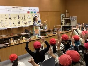 今日はスペシャルゲストとして、紙芝居制作と口演に携わっておられる 野澤さんをお招きして、吹田の伝統野菜である「くわい」について学びました。吹田市のキャラクターである「すいたん」のモチーフとしておなじみの野菜です。めくられる紙芝居の世界に入り込み、夢中になった時間はあっという間でした。この出会いを契機に、子どもたちの紙芝居や歴史に対する興味につながればと思います。野澤さん、寒い中ありがとうございました。