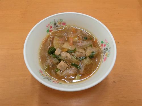 10月14日「モチモチトッポギ入り豚キムチ」「中華スープ」「ごはん」