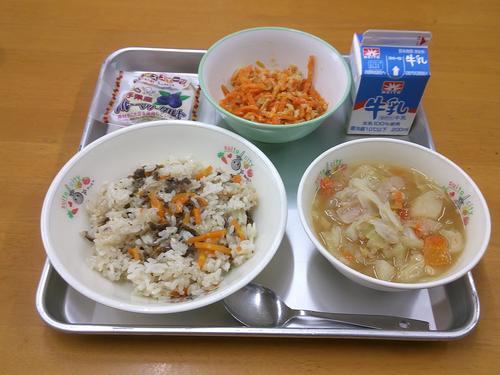 10月17日「米粉カレーライス」「じゃこサラダ」
