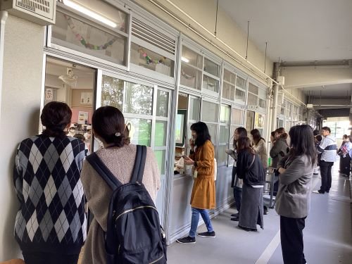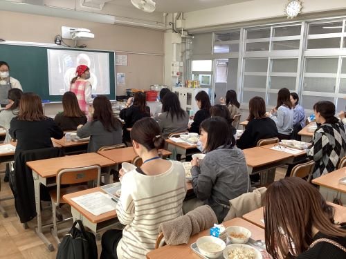 1年生保護者の方を対象にしたPTA主催の給食試食会が行われました。栄養教諭や給食調理員さんからの説明の後、1年生の給食指導の様子をご覧いただきました。