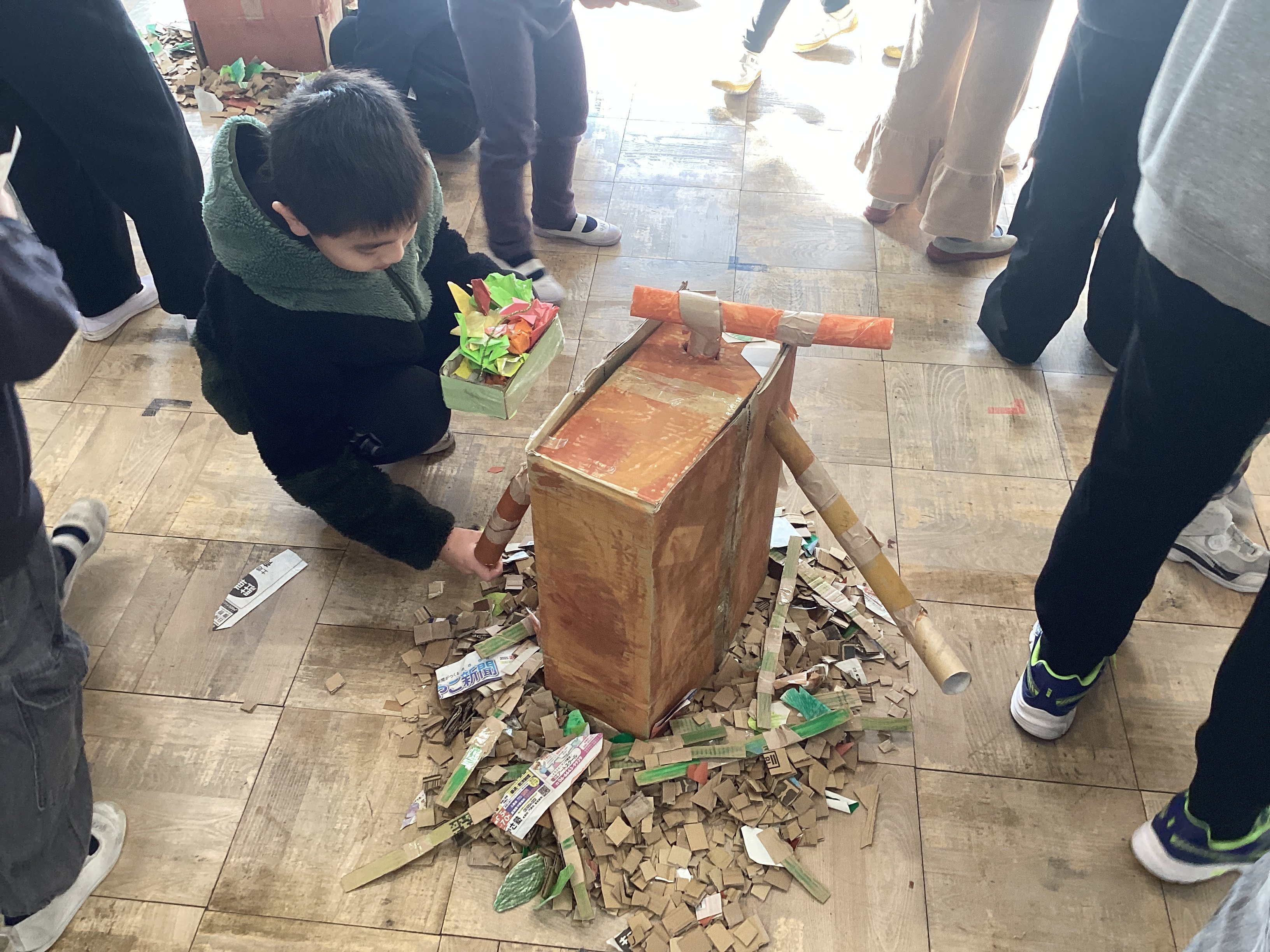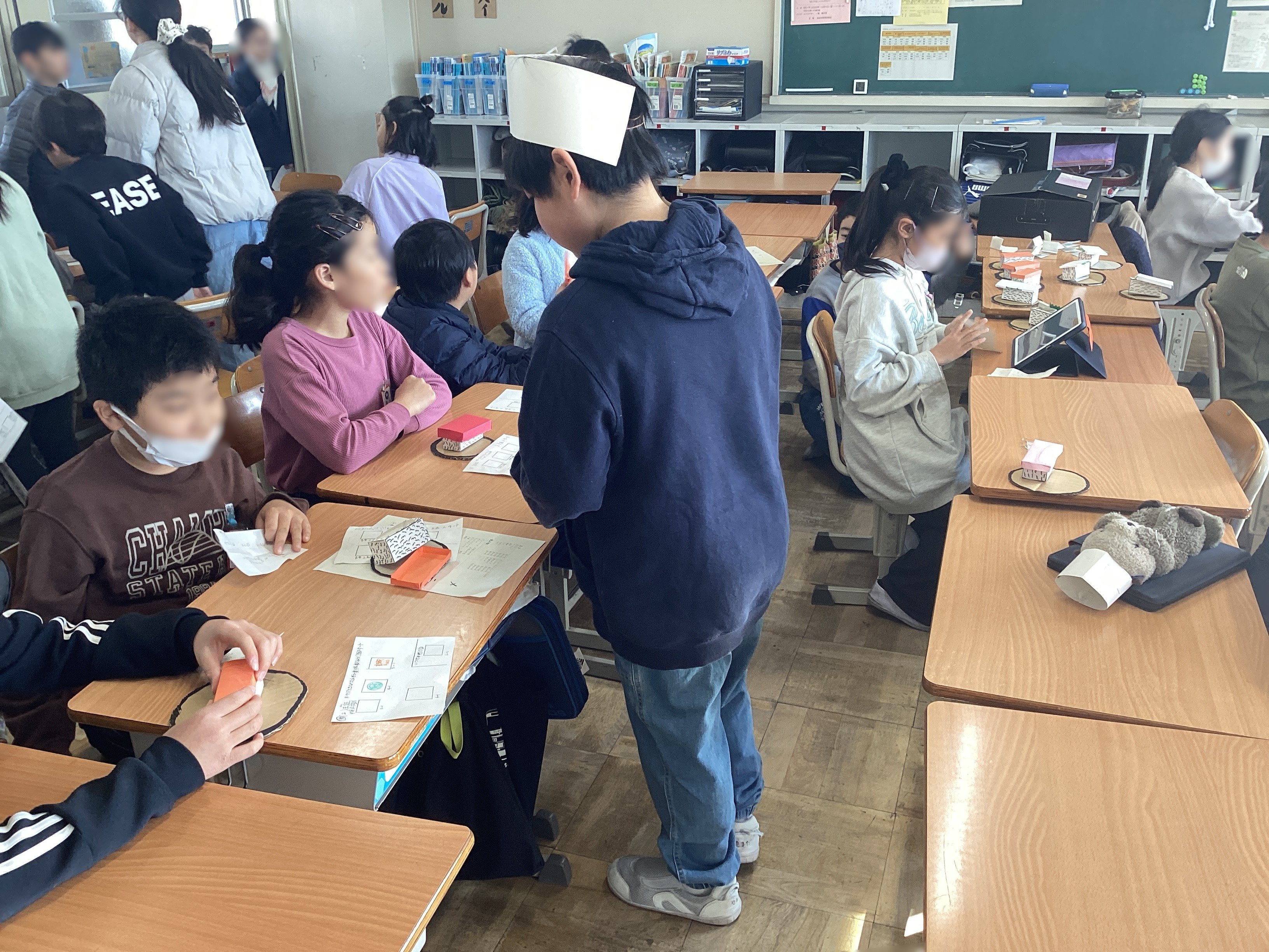 お店で僕がはまったのは、5年生のスシロー。寿司を紙で手作りしていてかわいかったし、メニューの表示も本格的な感じで壁に貼られていて、雰囲気作りにびっくり。ゲームコーナーは、すしの中にクイズが書かれていて答えたり、すしを何個積み上げられるかを競うコーナーがあったりして楽しそうでした。