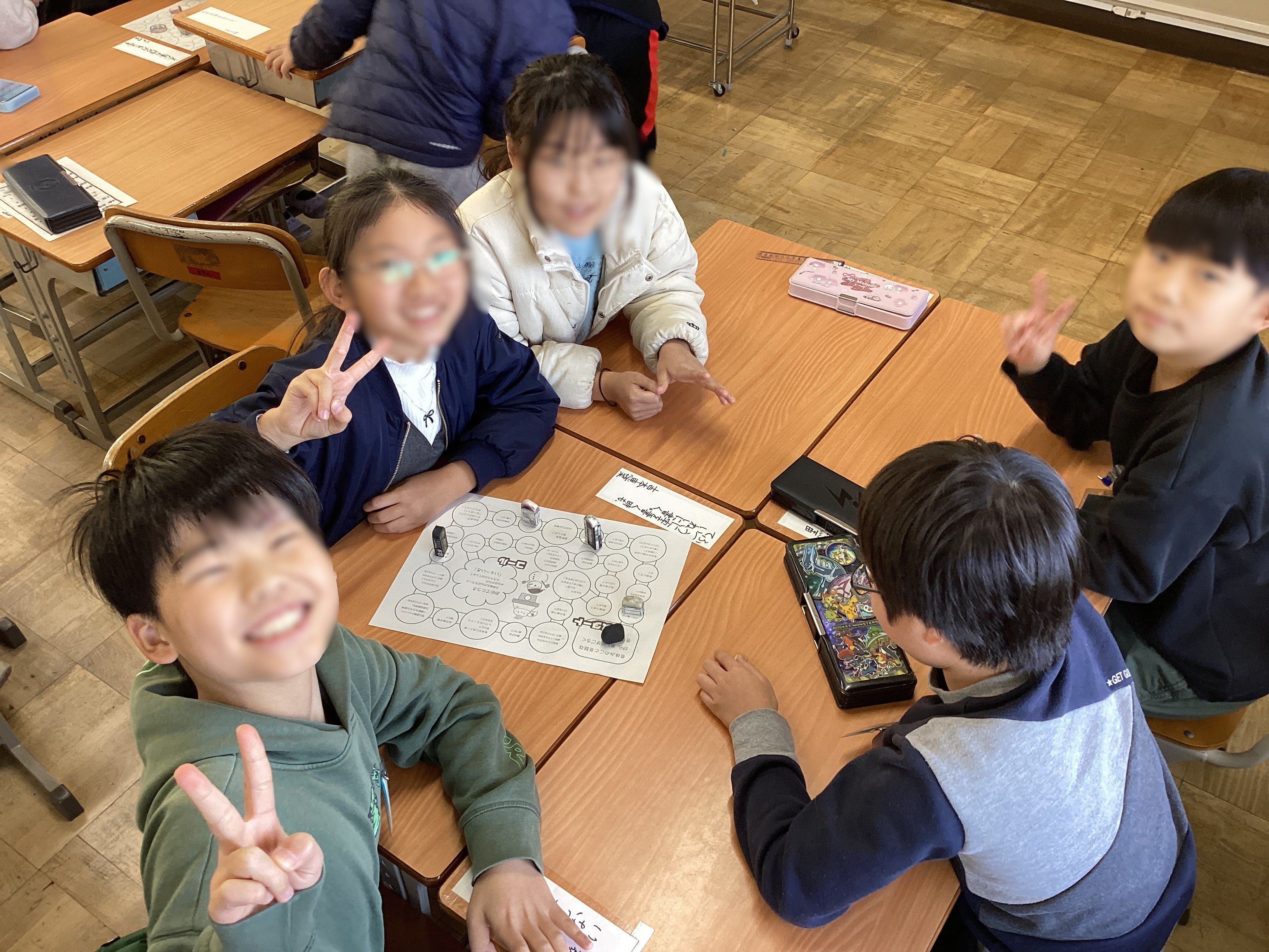 4年生のすごろくは大盛り上がりでめちゃくちゃ楽しそうでした。冬休みの思い出を語るだけでなく、「先生とじゃんけんをして勝ったら1マス進んで負けたら5マス戻る」とか、「みんなでおじぎをして、明けましておめでとうございます♪と言う」とか、「みんなでマリオのジャンプをする」とか...楽しみながらグループの友だちや先生と交流するような工夫がされていました。