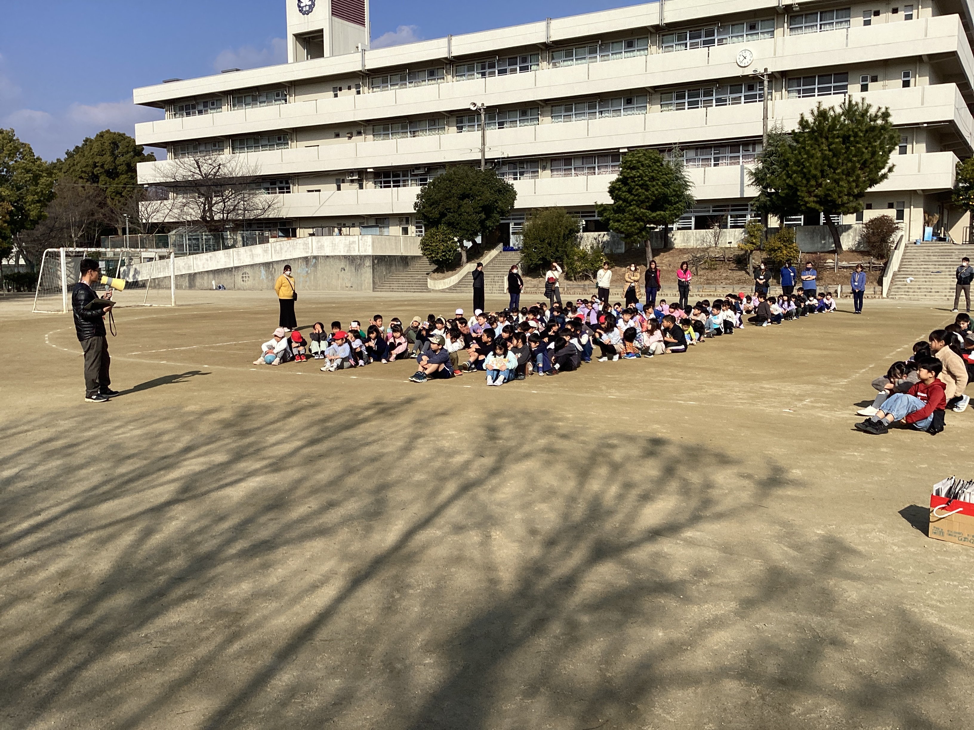 全体的にも概ねスムーズに避難できており、避難指示の放送が流れてから全員が運動場に整列して揃うまで5分。業間休みに運動場で子どもたちの様子を見ていた先生からは、お互いに「走らないよ」「頭を守って」などの声を掛け合いながら身を守る行動をとれていたという話もありました。