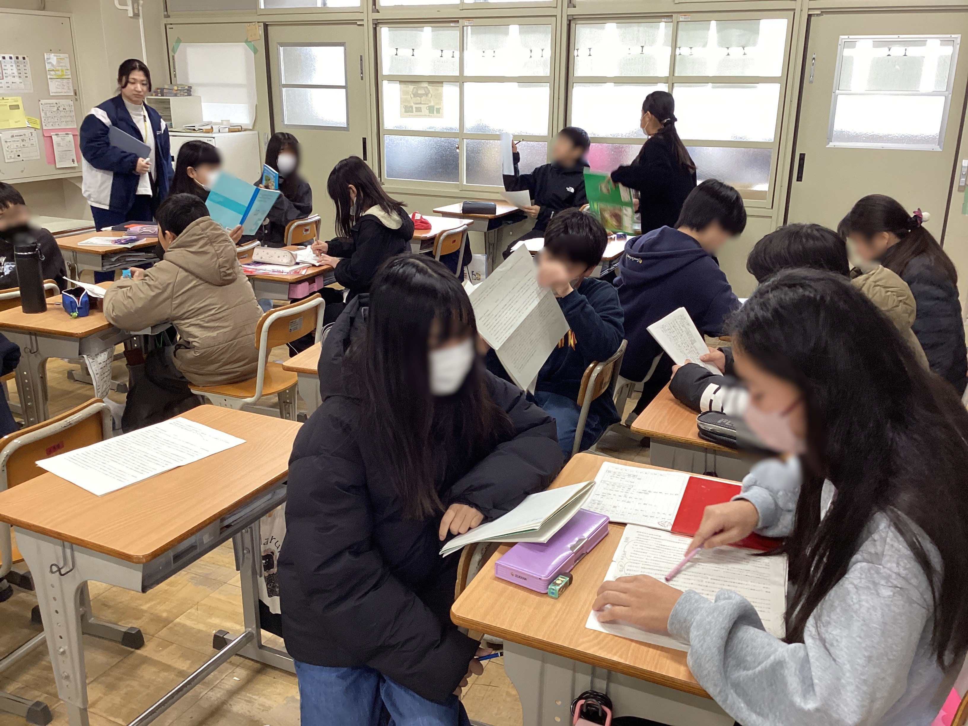 今日の4時間目は、29日に実施する研究授業の事前授業として、2組の先生が1組で授業をしました。