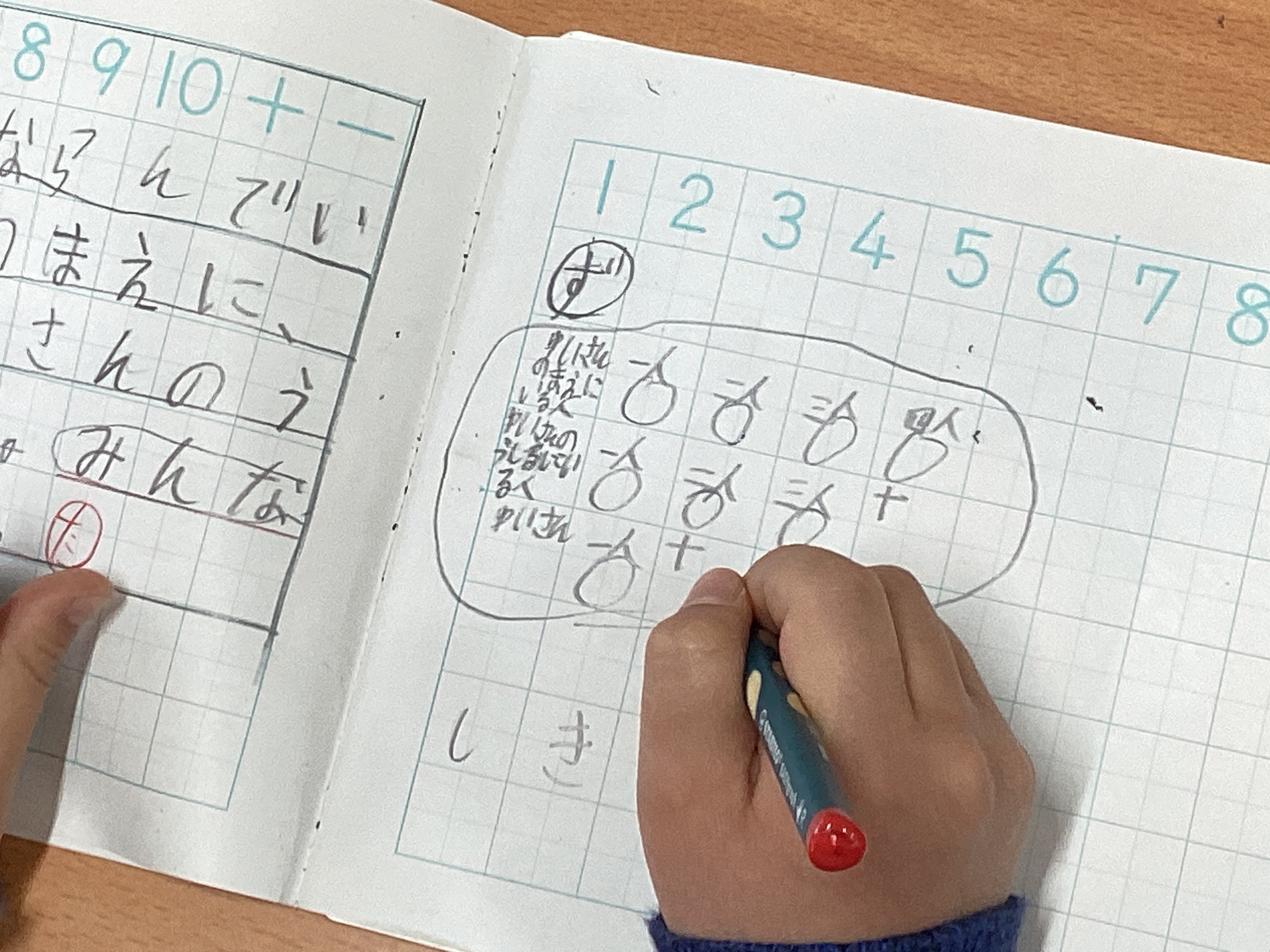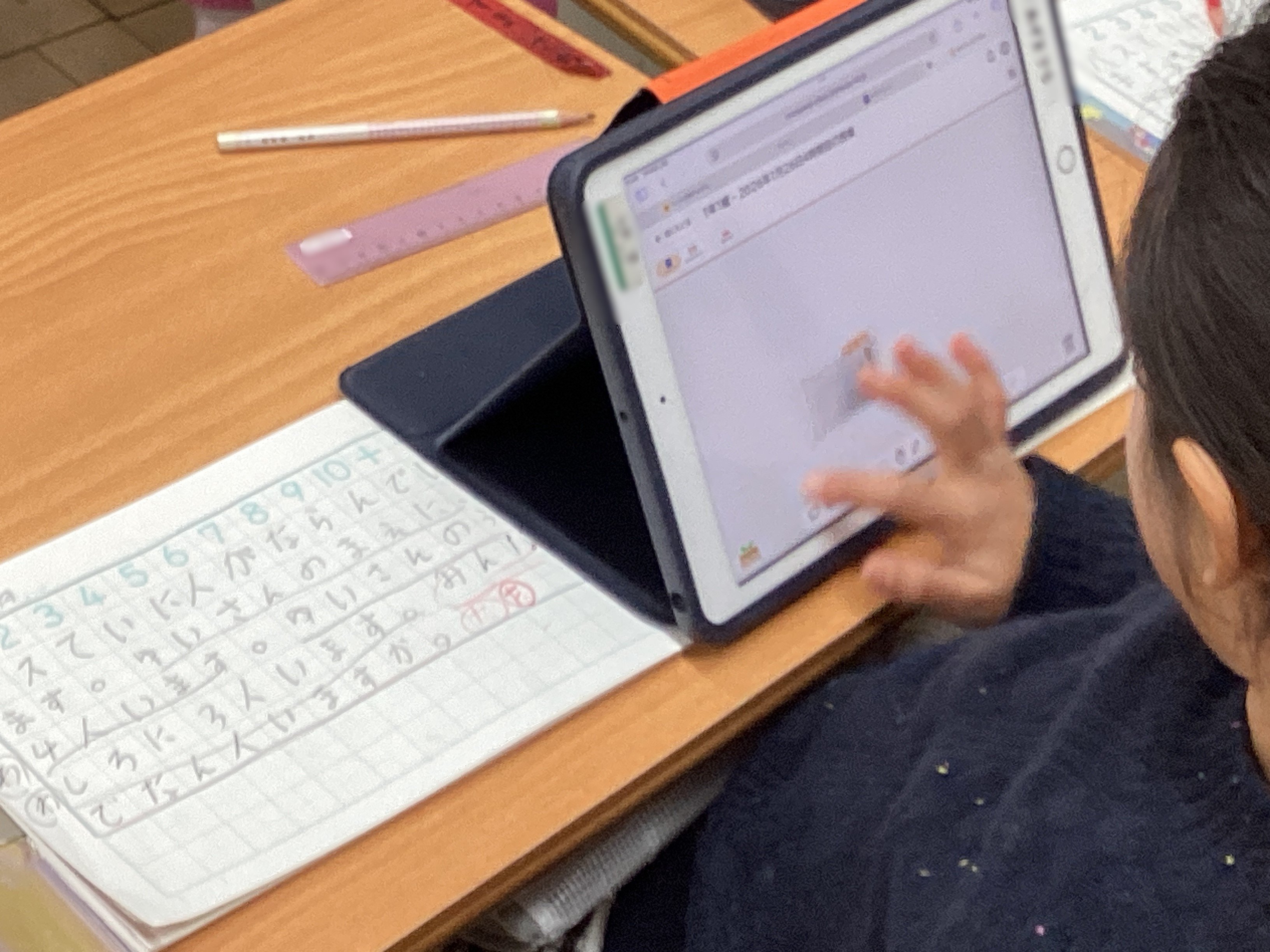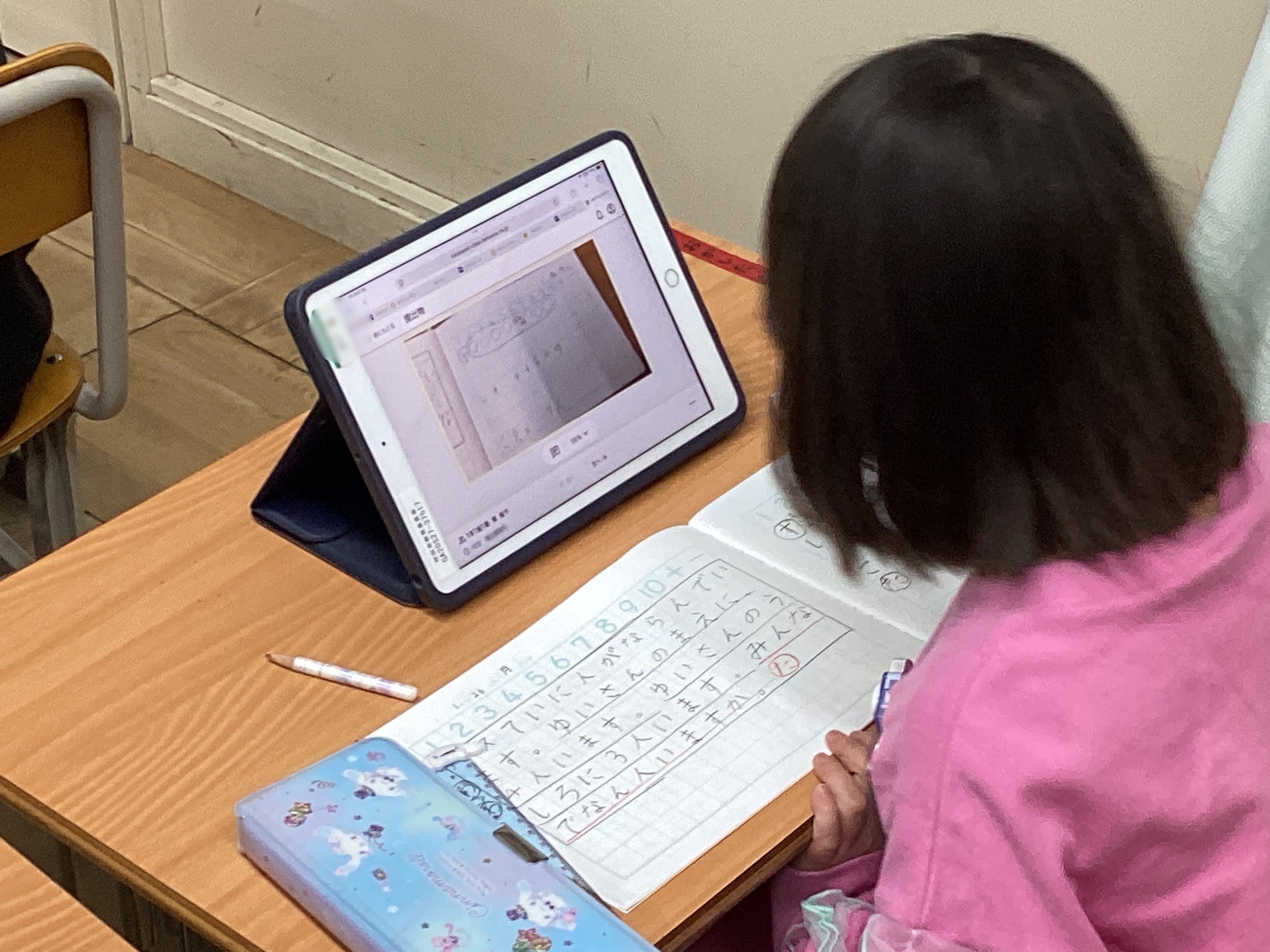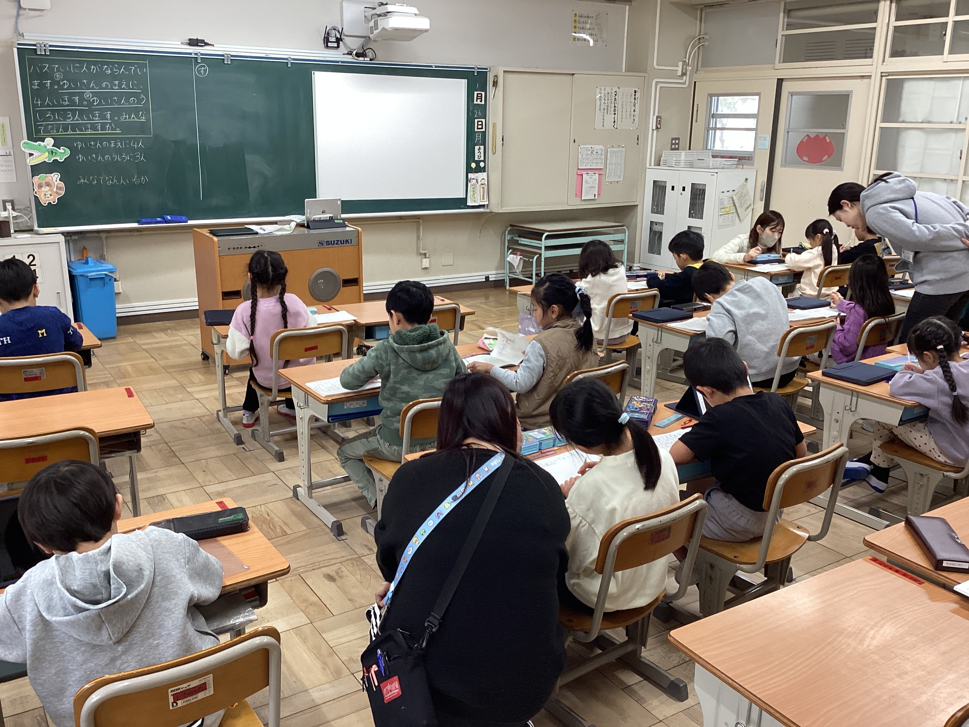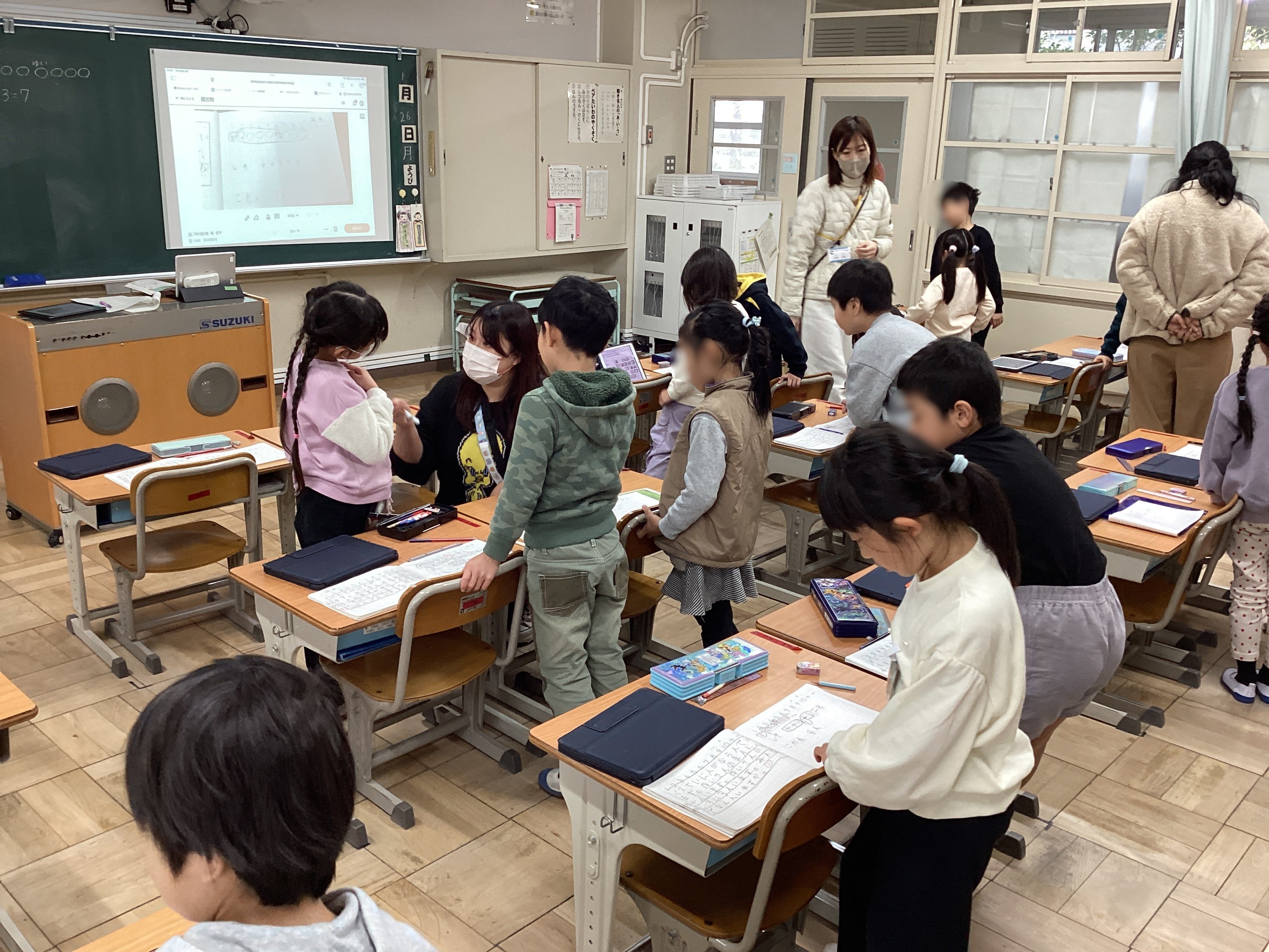 続いて、1年生の教室を覗くと、一方のクラスは国語の授業で漢字の学習を行っていました。