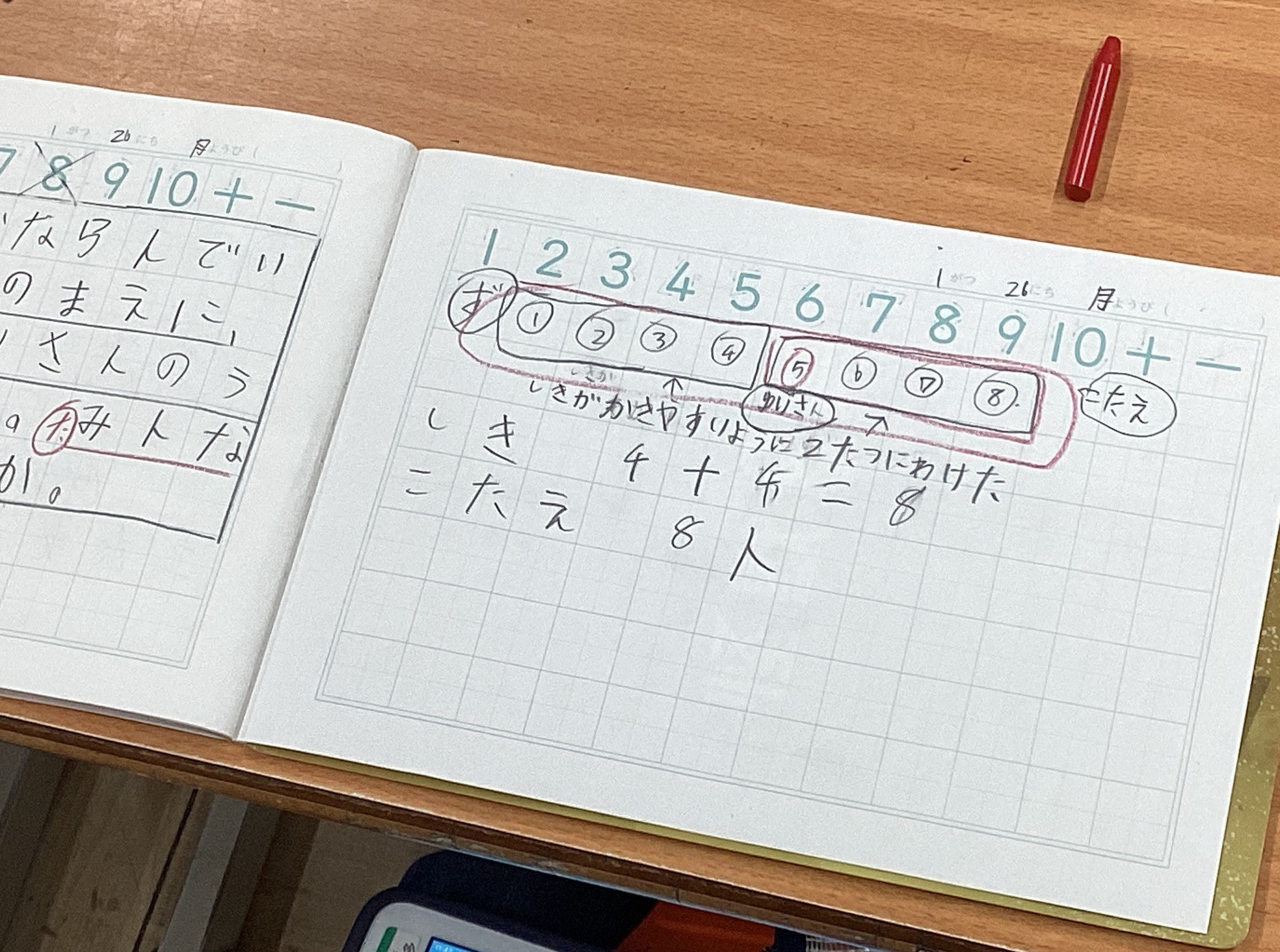 「ねぇねぇ、〇〇さんは5+3=8って書いてるけど、△△さんは4+4=8って書いてるよ。」