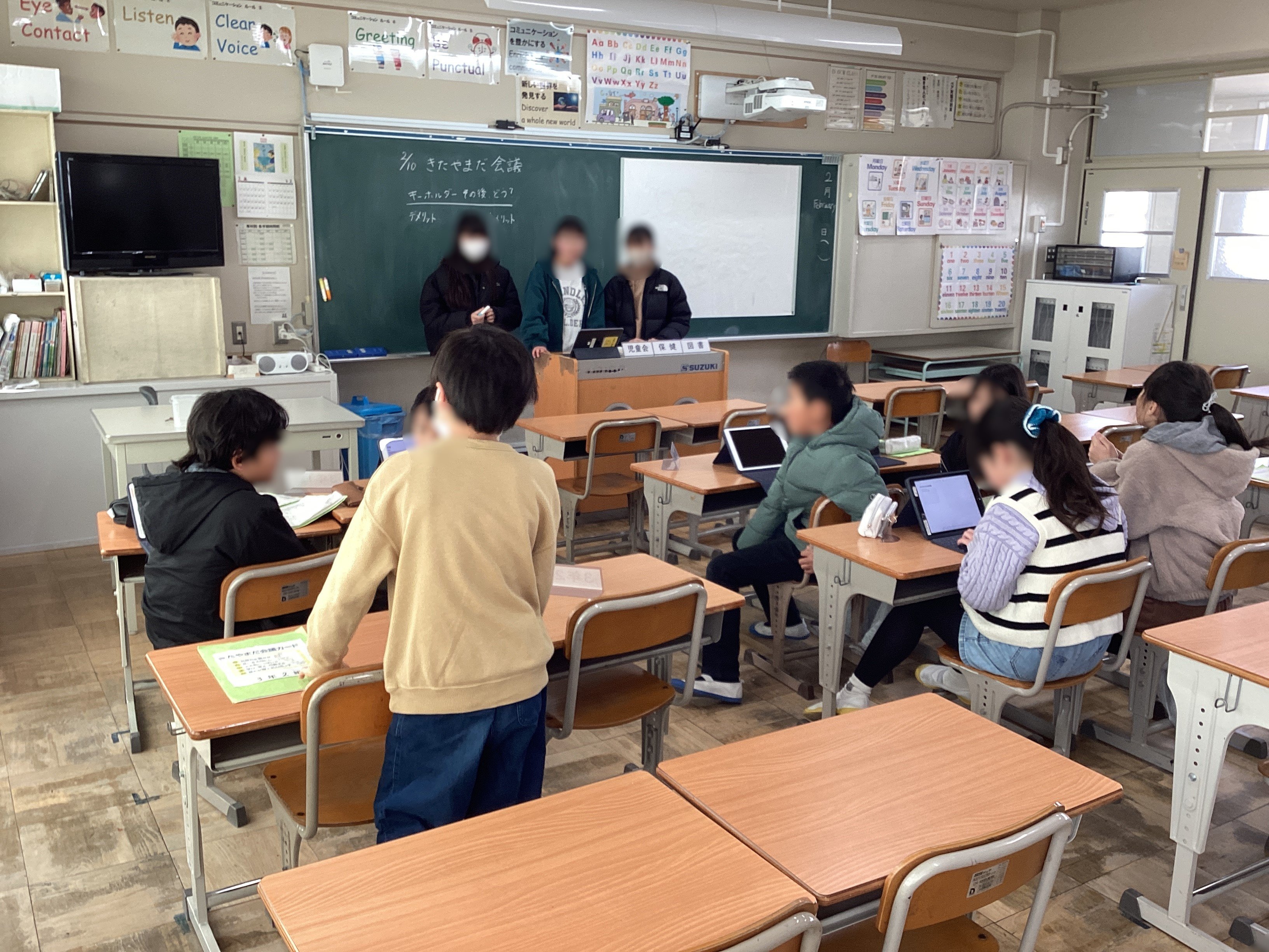 司会の6年生が進行と書記をしてくれて、メンバーから意見を聞きながらメリットとデメリットに分けて板書してくれました。細かなトラブルもあったようですが、概ね大きなトラブルはなかったようです。この結果を先生たちの間でも共有し、今後どうするかを決めていく予定です。
