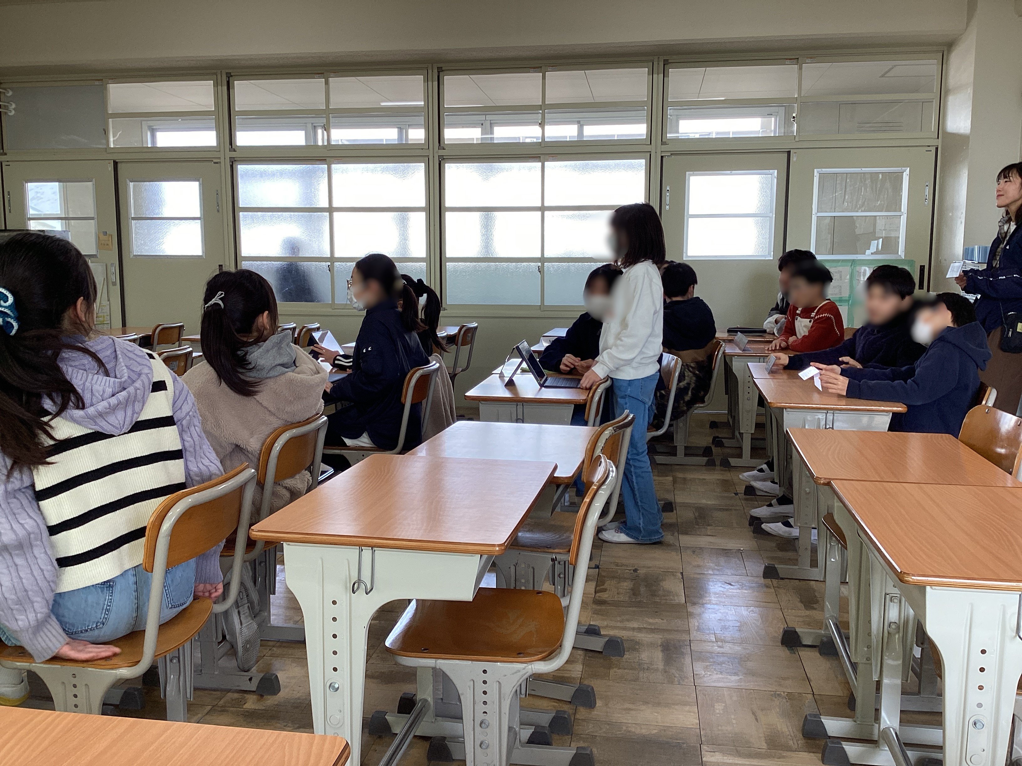 1,2年生の教室を中心に見て回りましたが、6年生たちは低学年にもわかる言葉で言い直したり、クイズを取り入れて興味を持てるようにしたりと、様々な工夫を凝らしてくれていました。