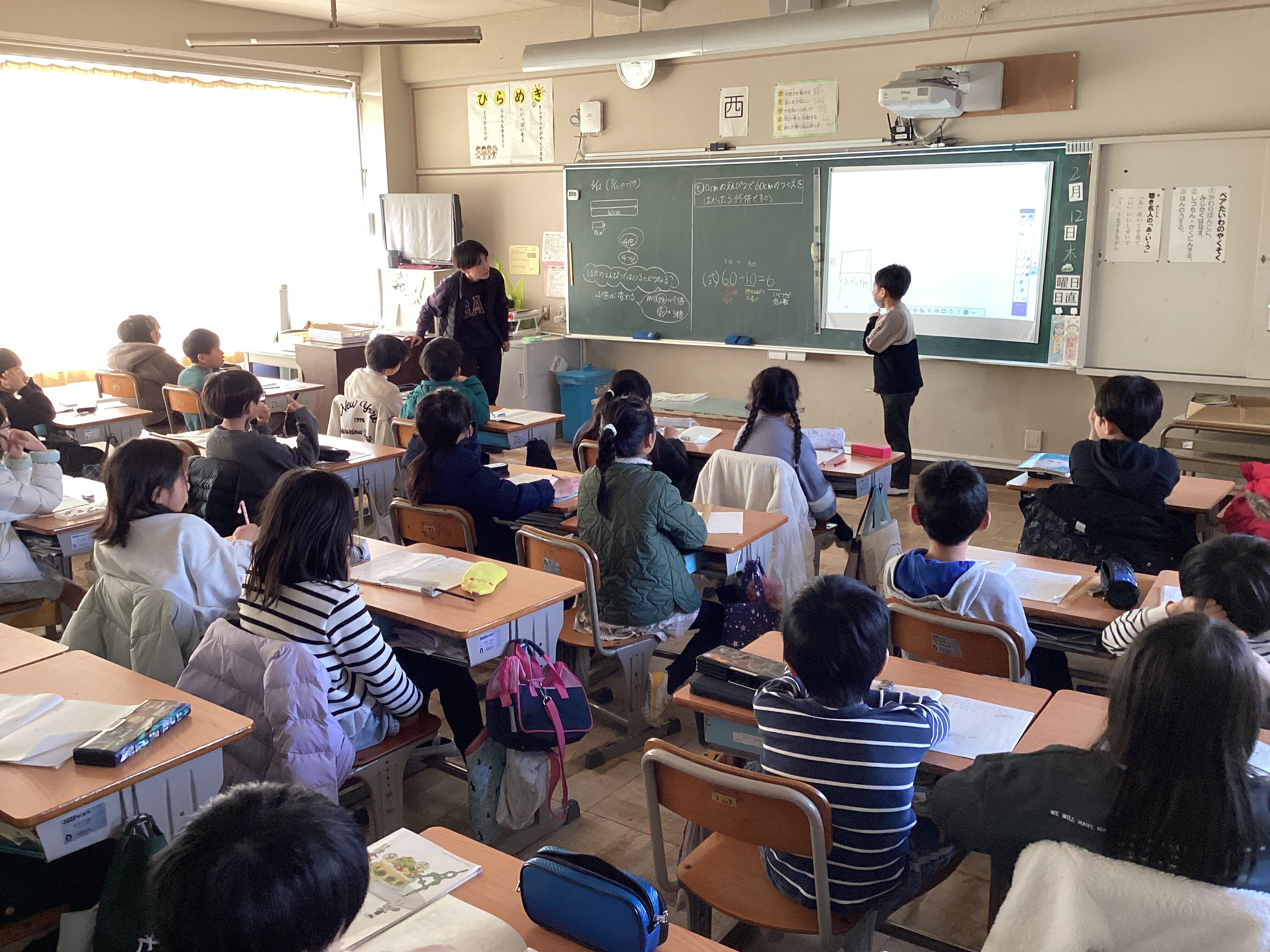 3年生の教室で行われていた算数の授業を参観。