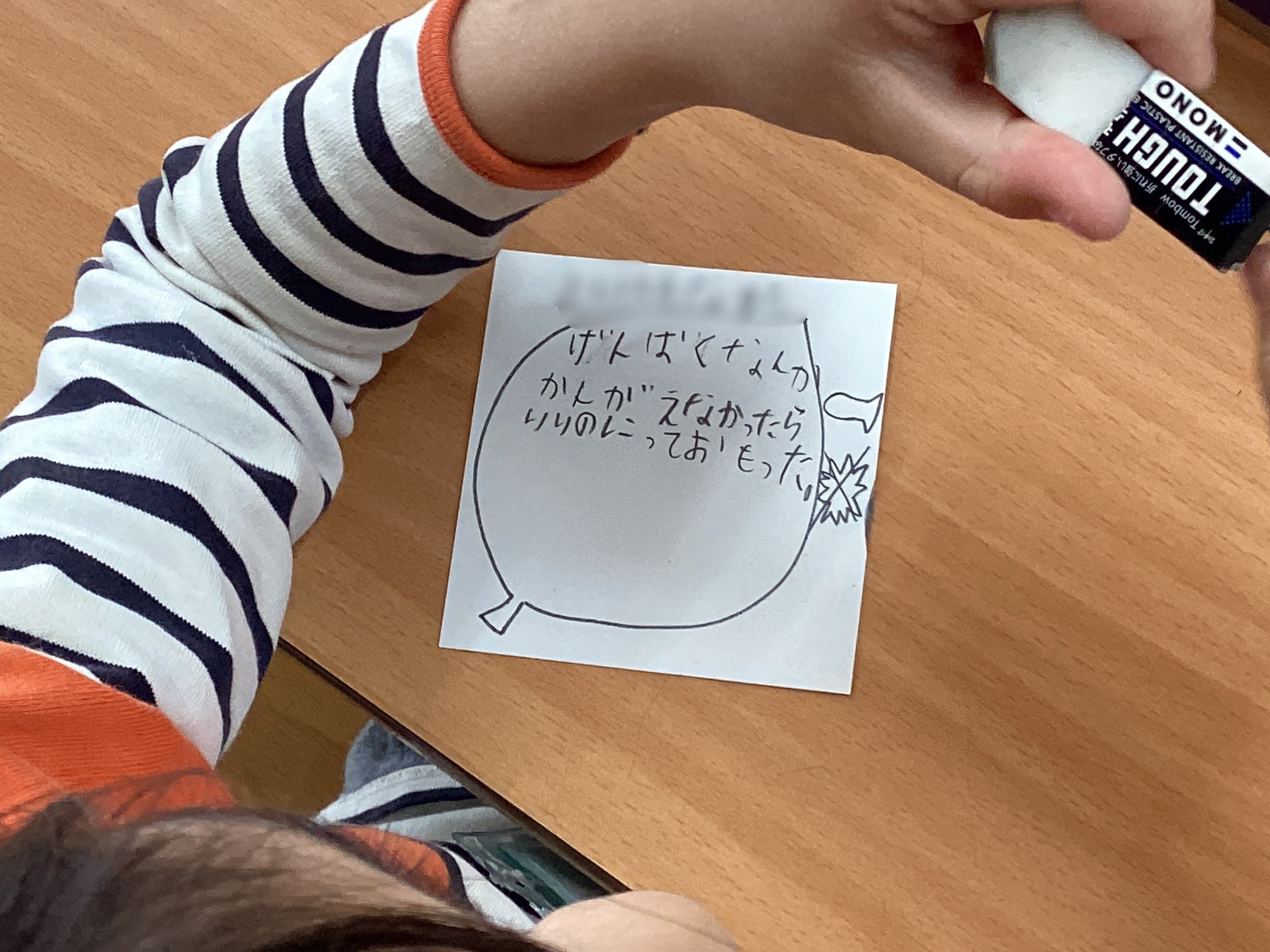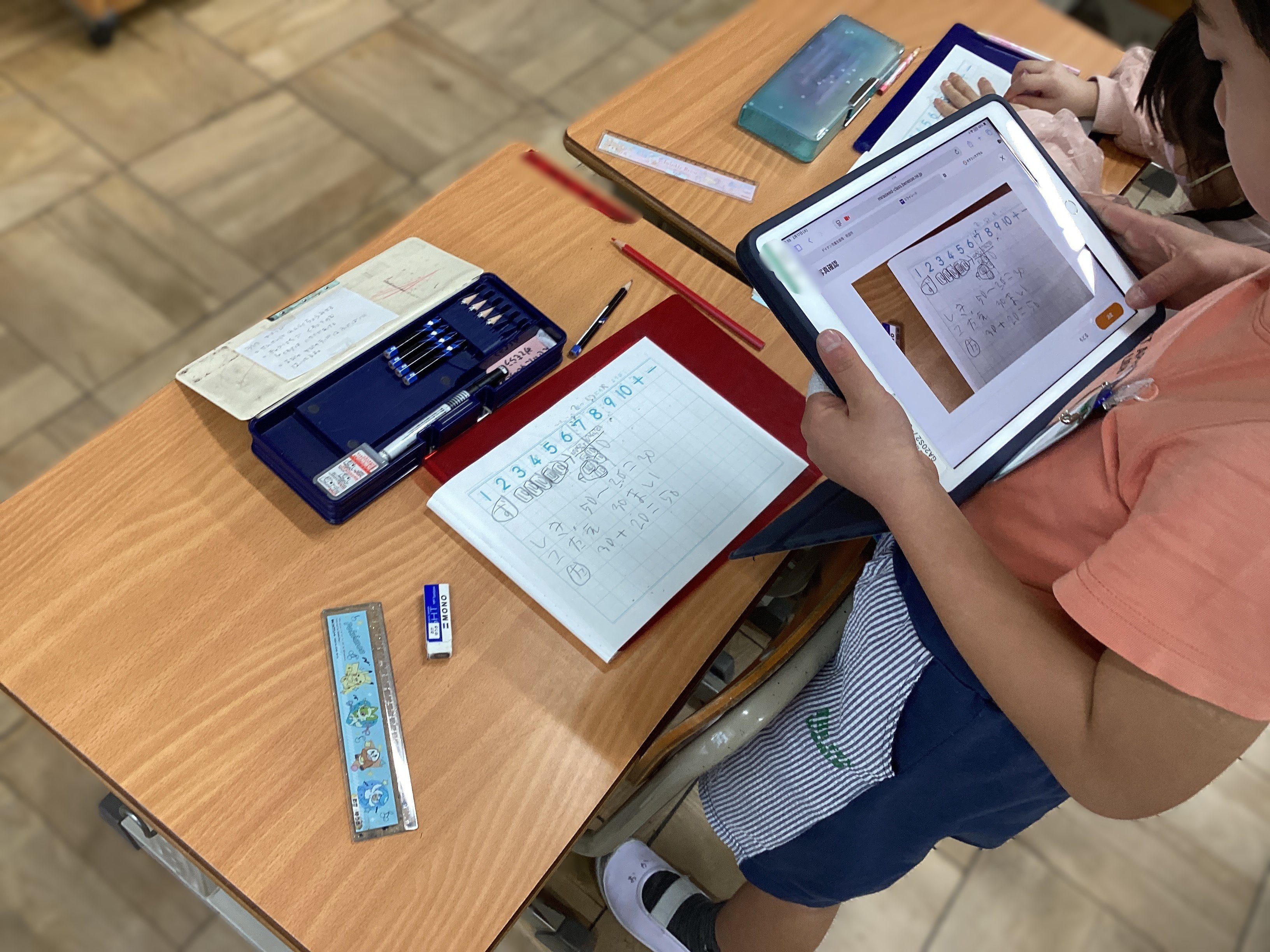子どもたちの様子を見てみると、ノートに書いた問題文に「た」という文字が。「なんだろう?」と思っていると、子どもたちから