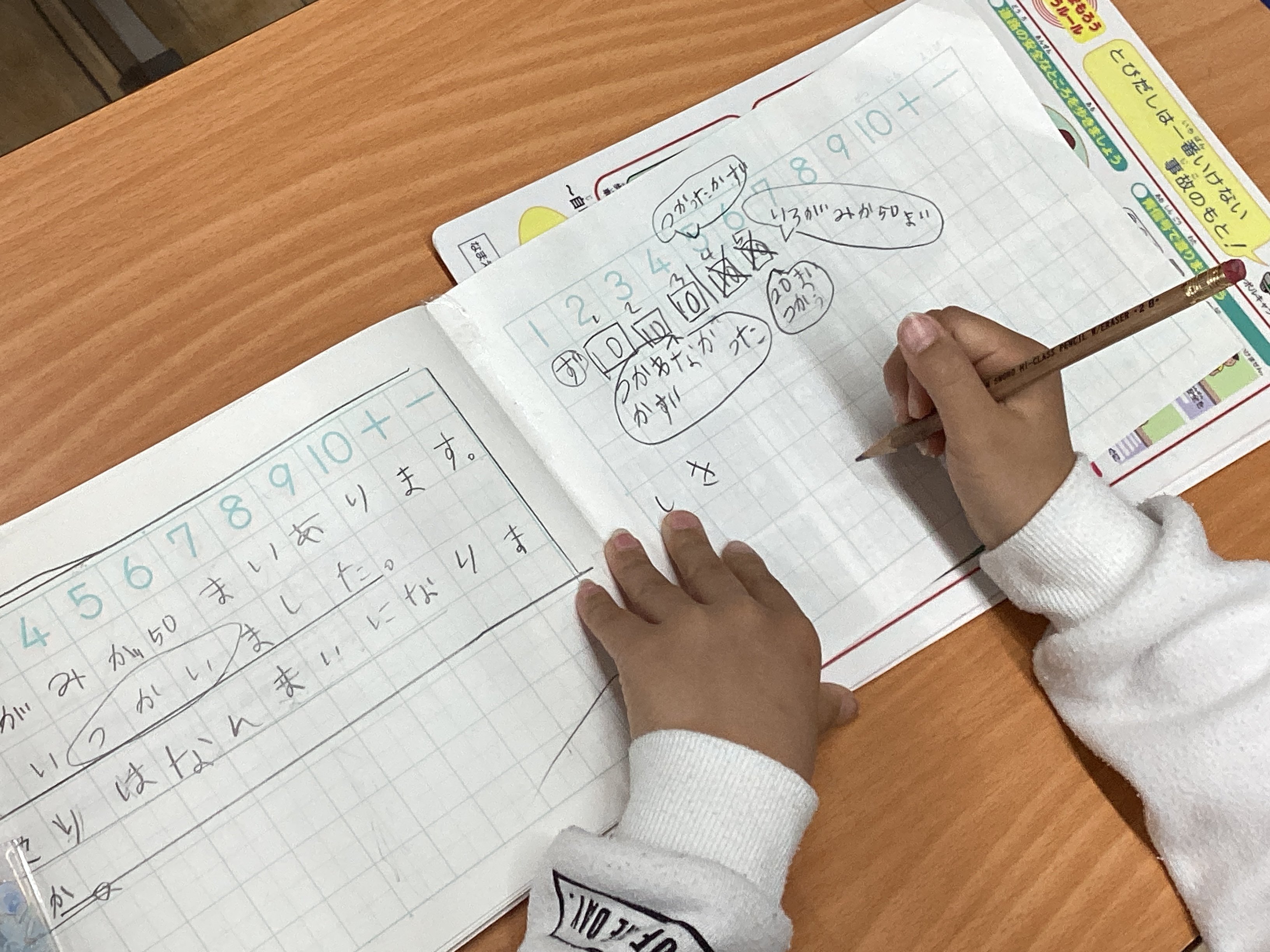 子どもたちを見ていると、ノートにどんどん線を引いて「わ」や「た」の文字を書き込んでいきます。