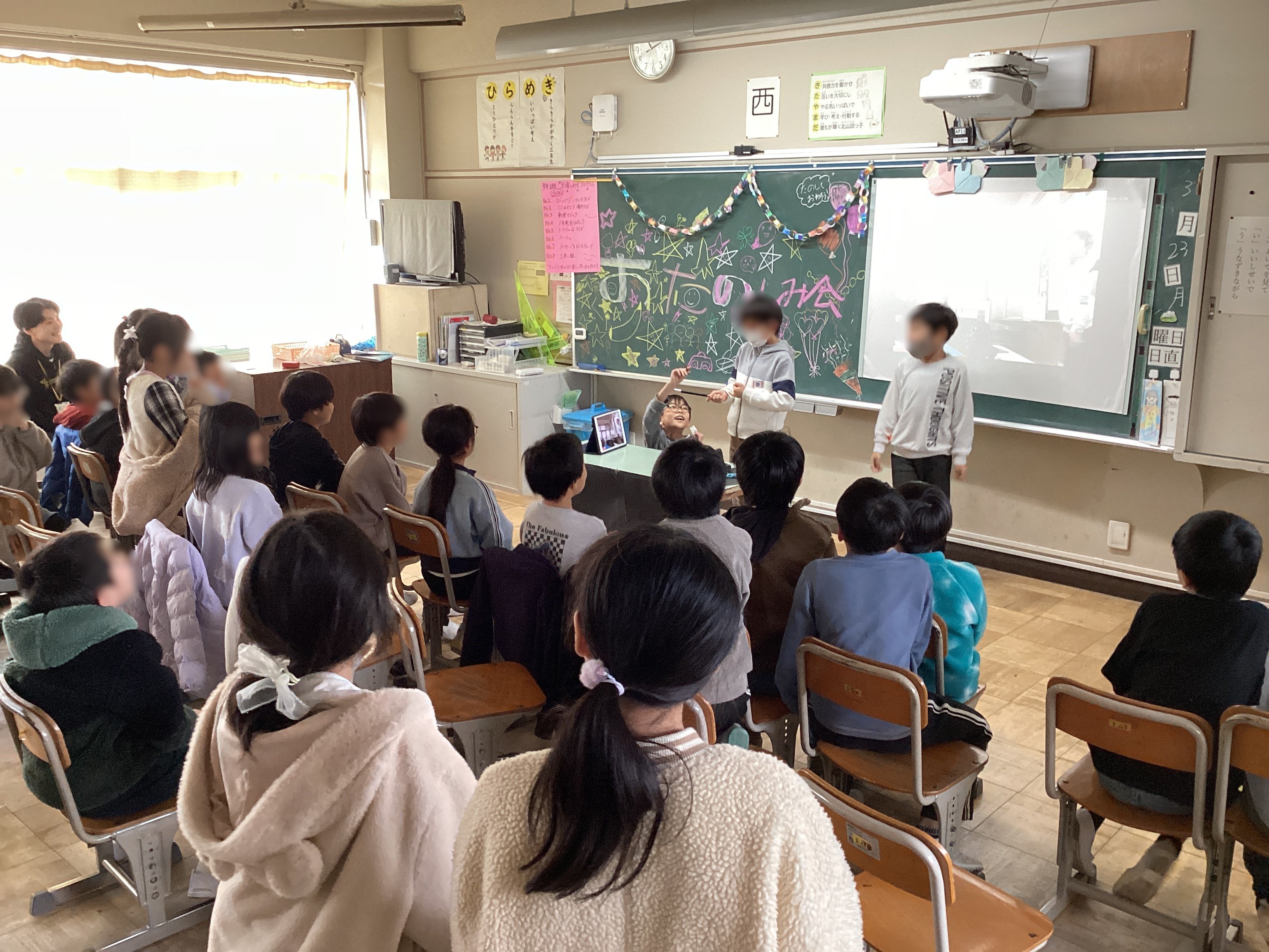 校内を見て回ると、お楽しみ会をしていたり、みんなで楽しく遊んでいたり、単元のまとめの授業をしていたり・・・。