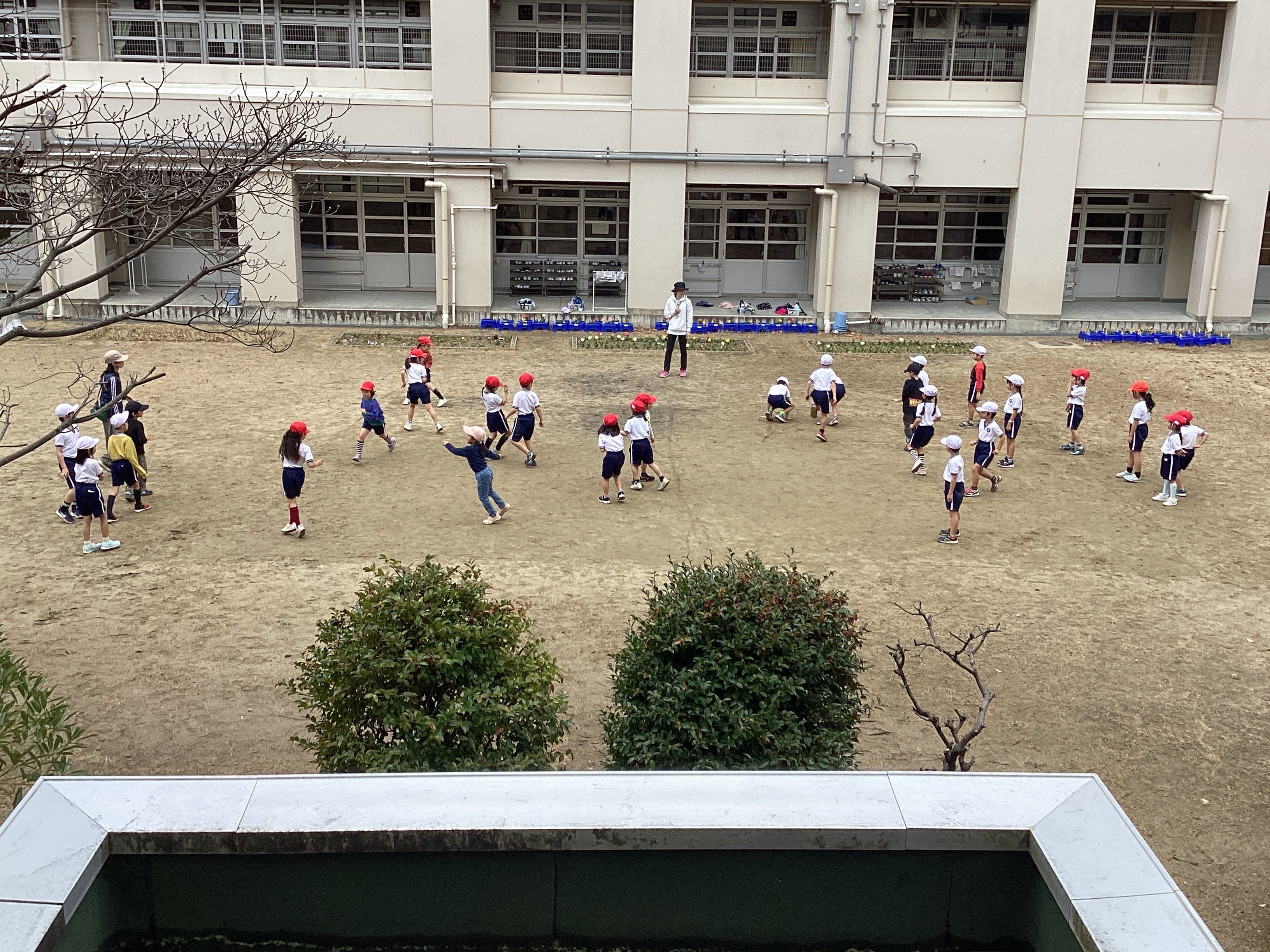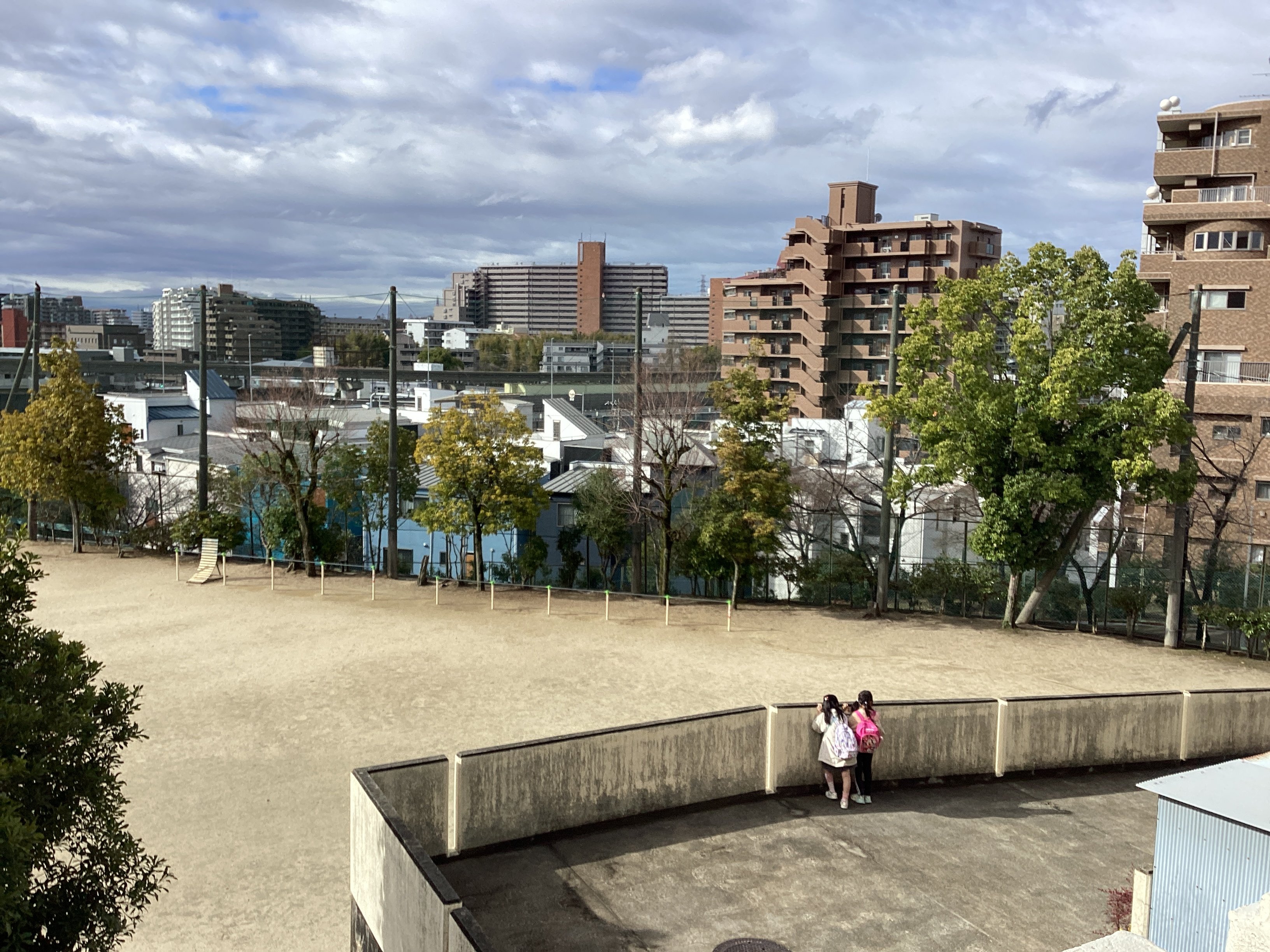 その後、職員室のベランダから外を見てみると、まだ2人並んで鳥を眺めていました。