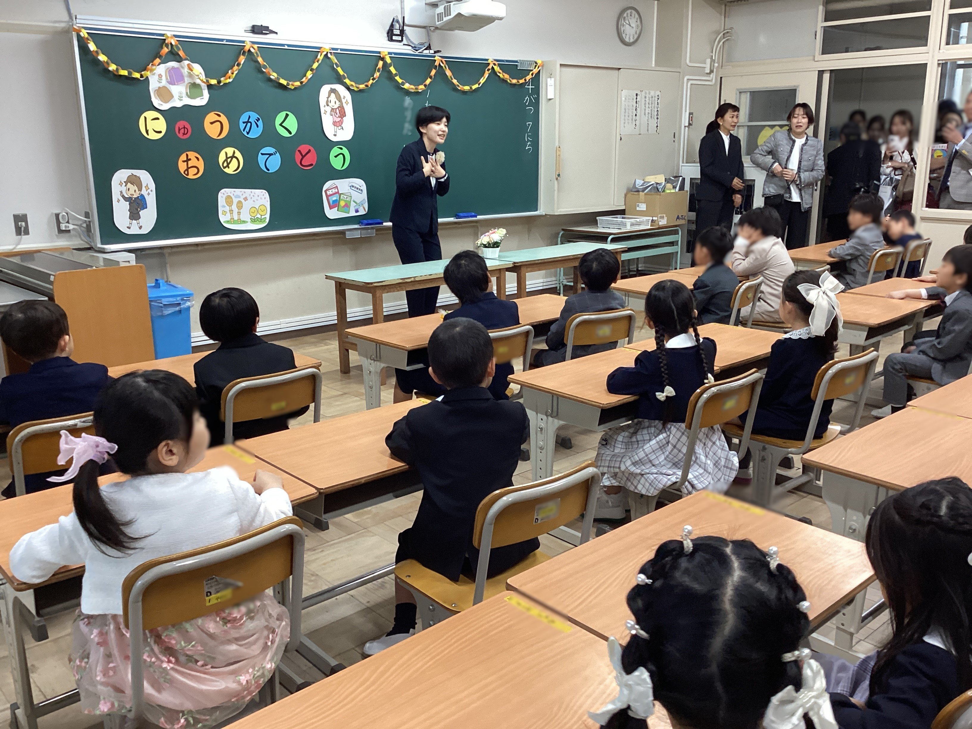 式後は、1年生は教室へ。しっかりと先生のお話を聴いている姿が見られました。