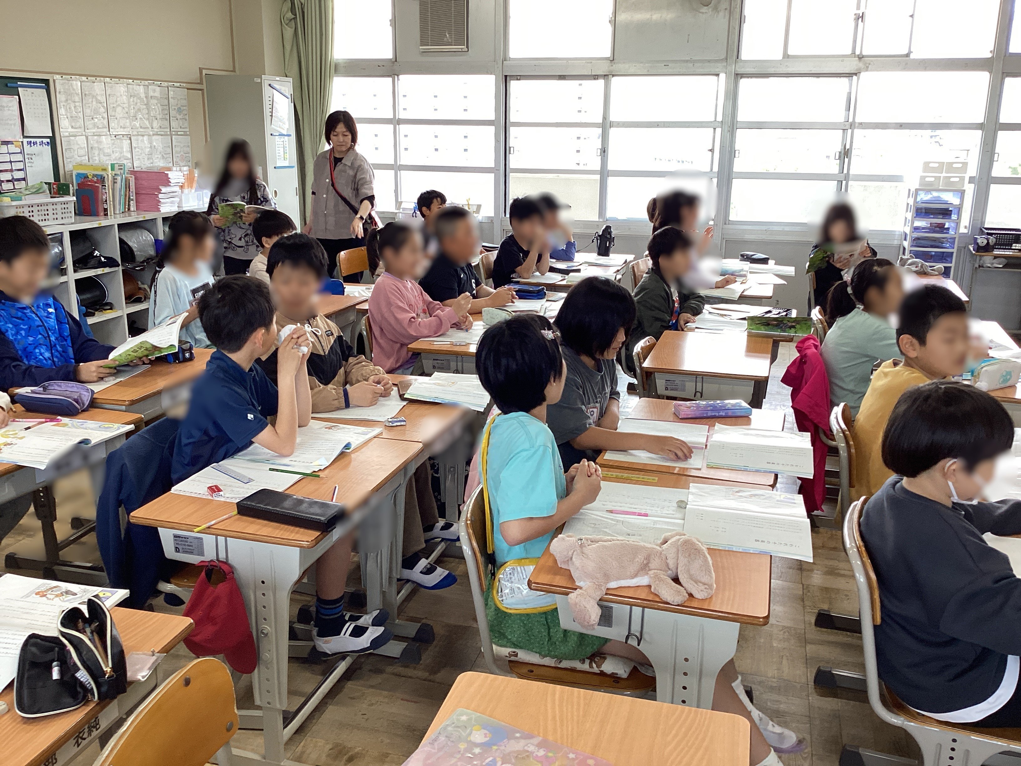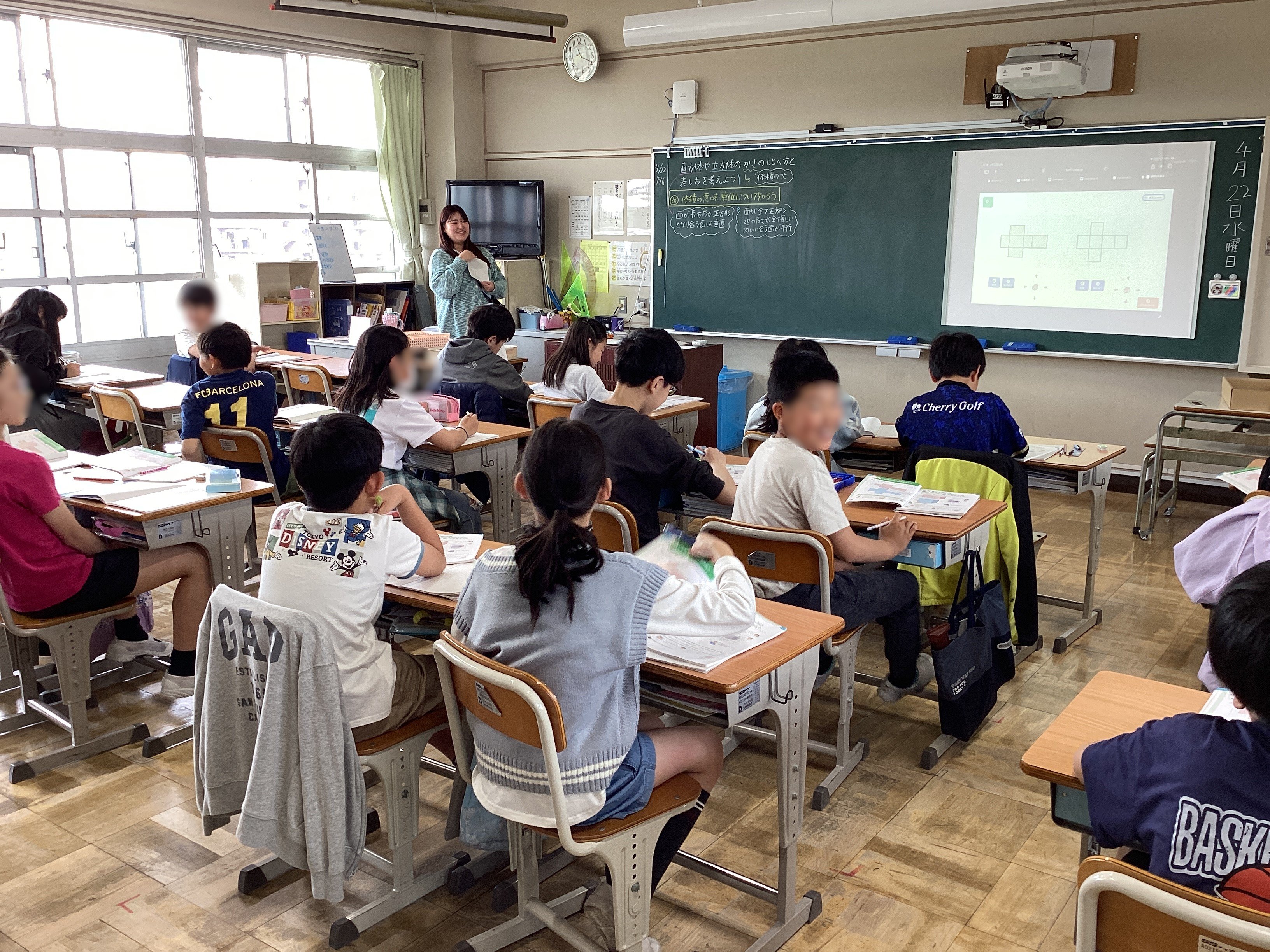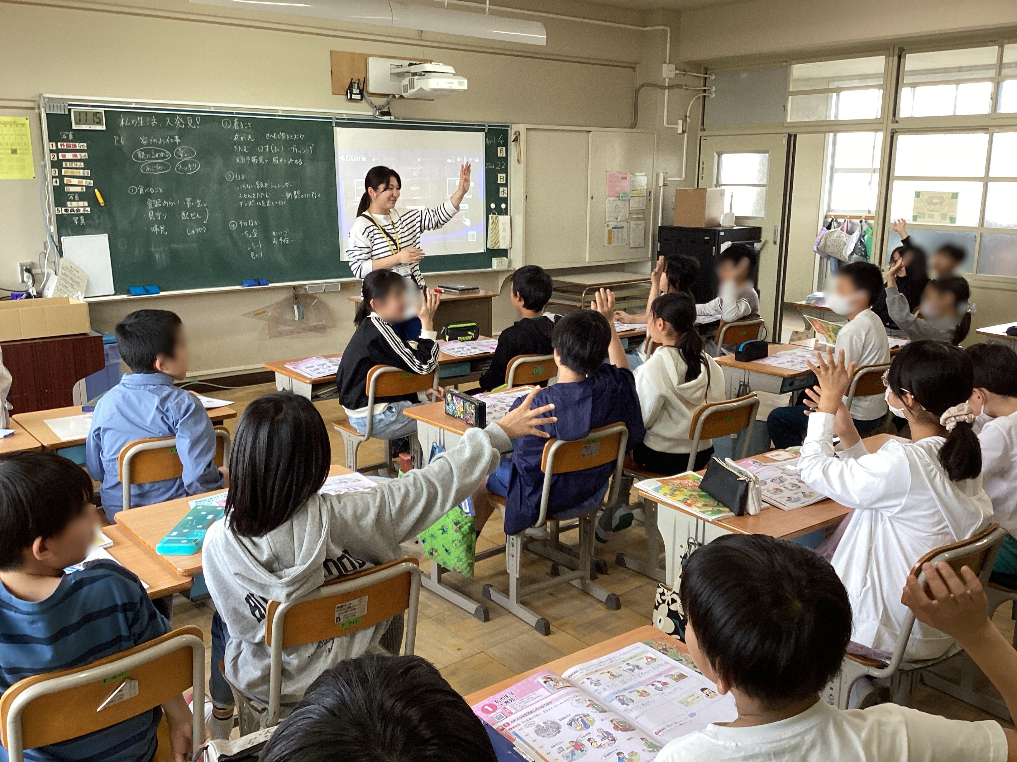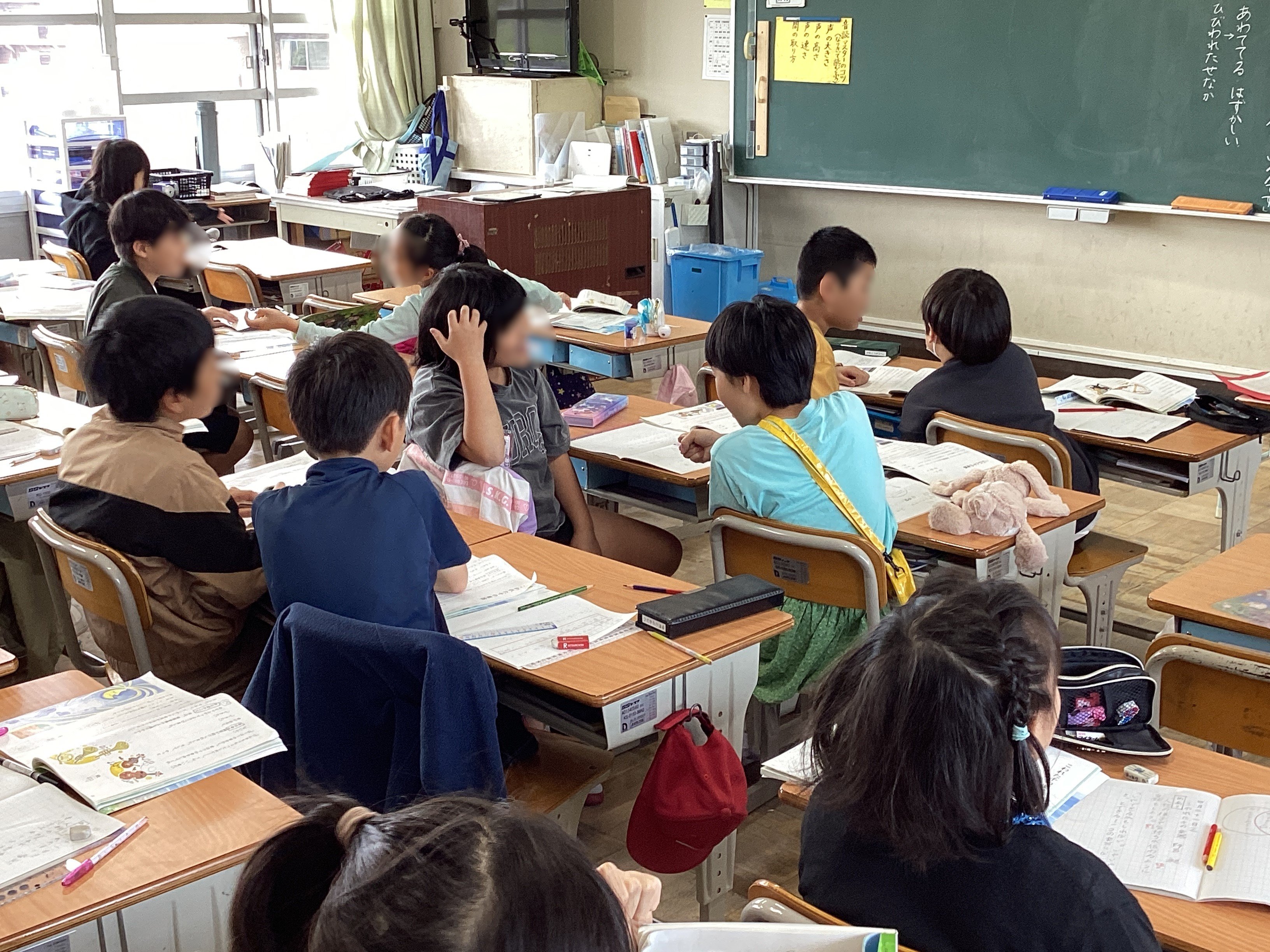 5年生の教室では、交換授業で行っている家庭科の授業が行われていました。
