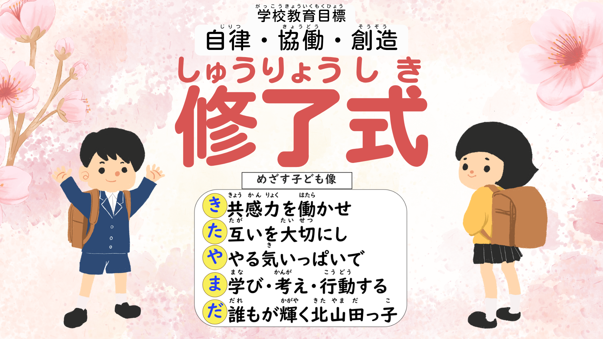 ありがとう。最高学年、明日から始まる小学校生活最後の1年間でのさらなる活躍を期待しています。