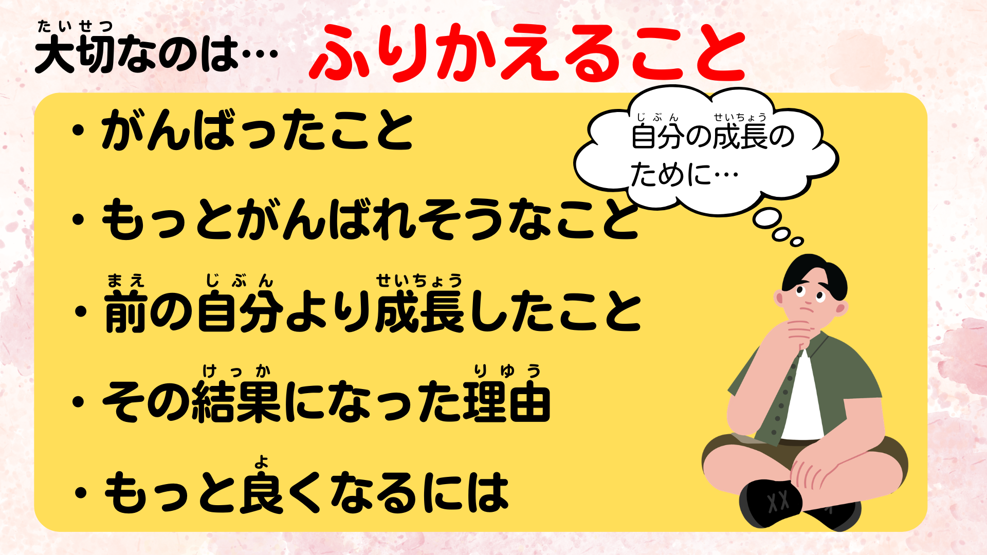 「できていないことは、どうすればできるようになるかを考えるため」