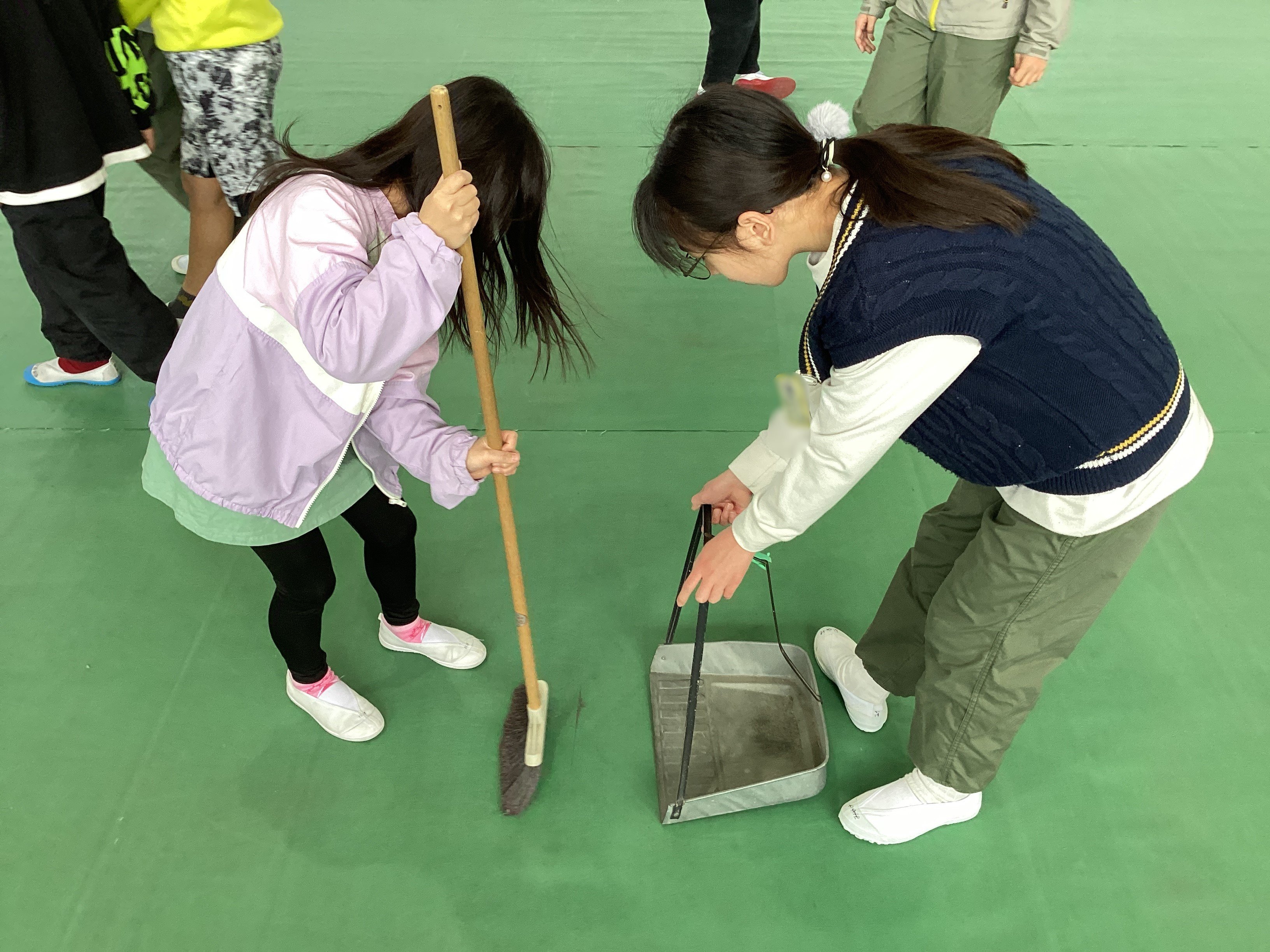 解散した後もまだゴミが気になるらしく、3人が残って掃いてくれていました。そして、それを見つけたクラスの子から「ありがとう!」の言葉が...。