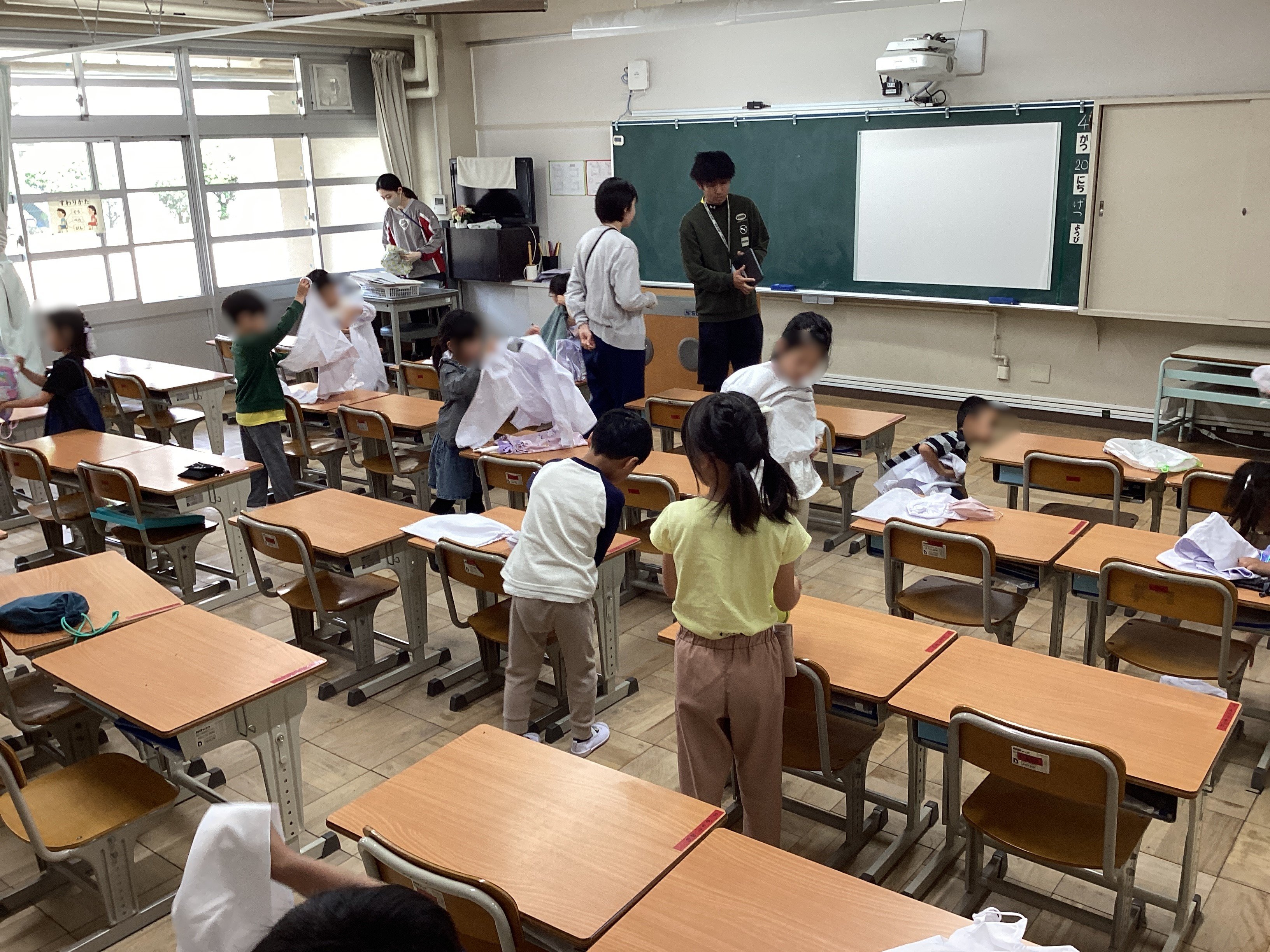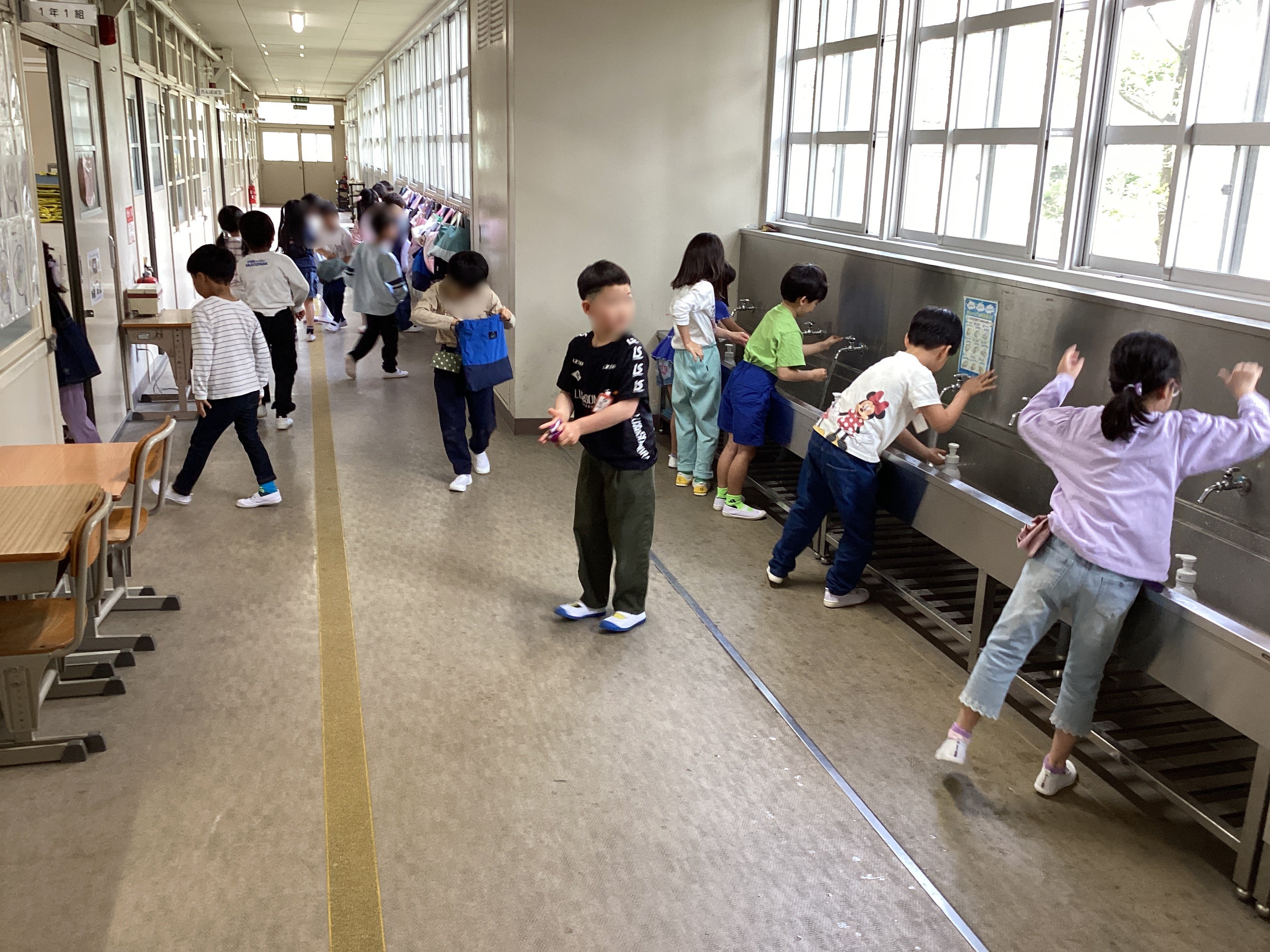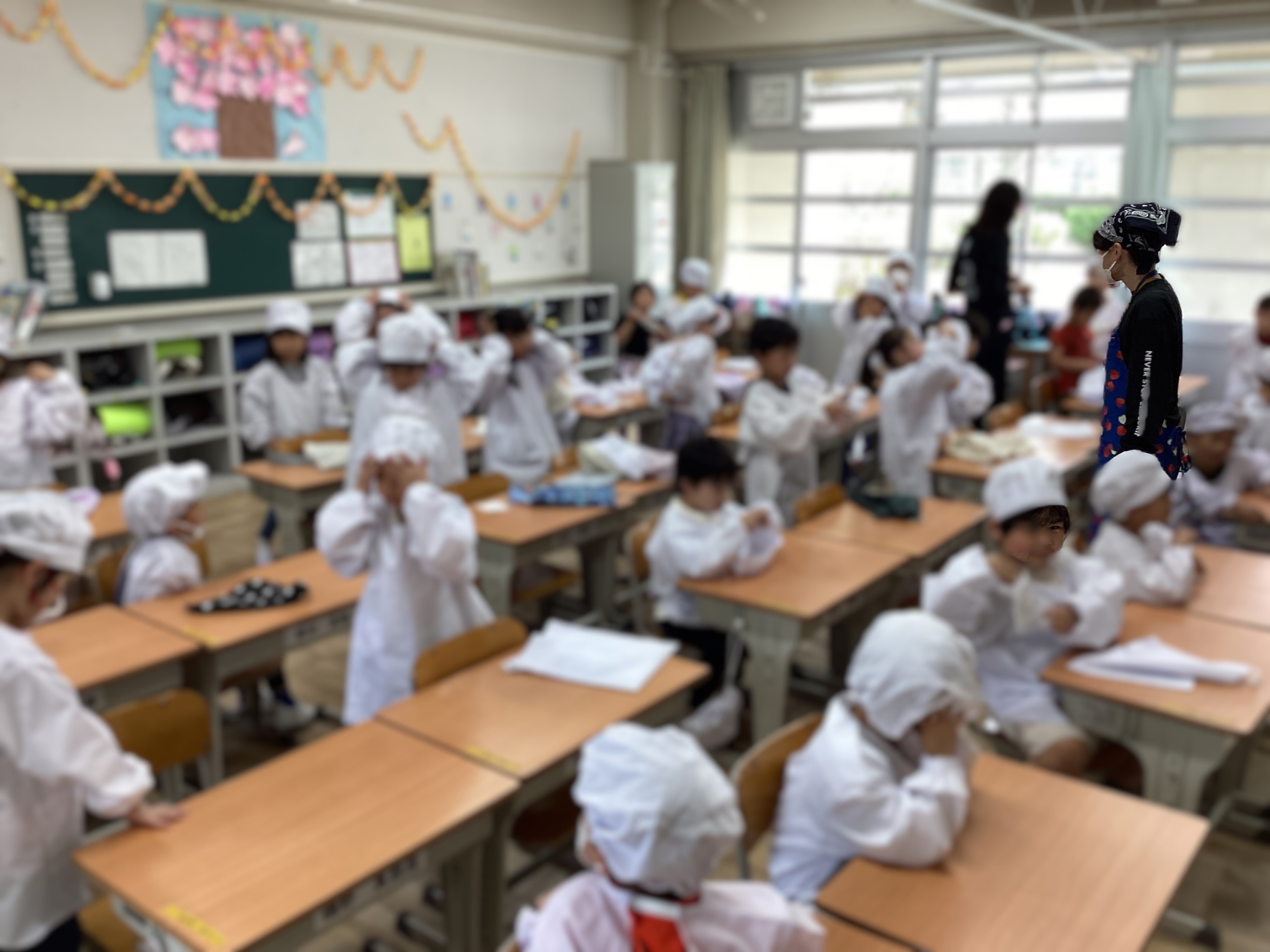 今日は1年生にとって初めての給食でした。準備を始める前に先生がこの後何をするのか一つ一つ確認し、行動開始。