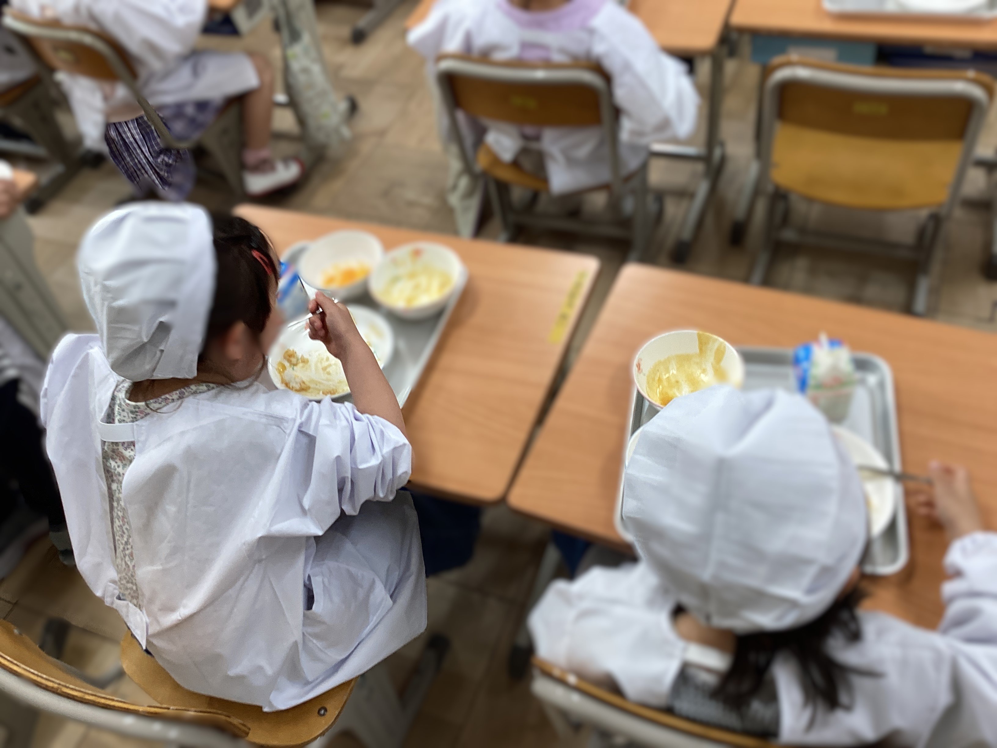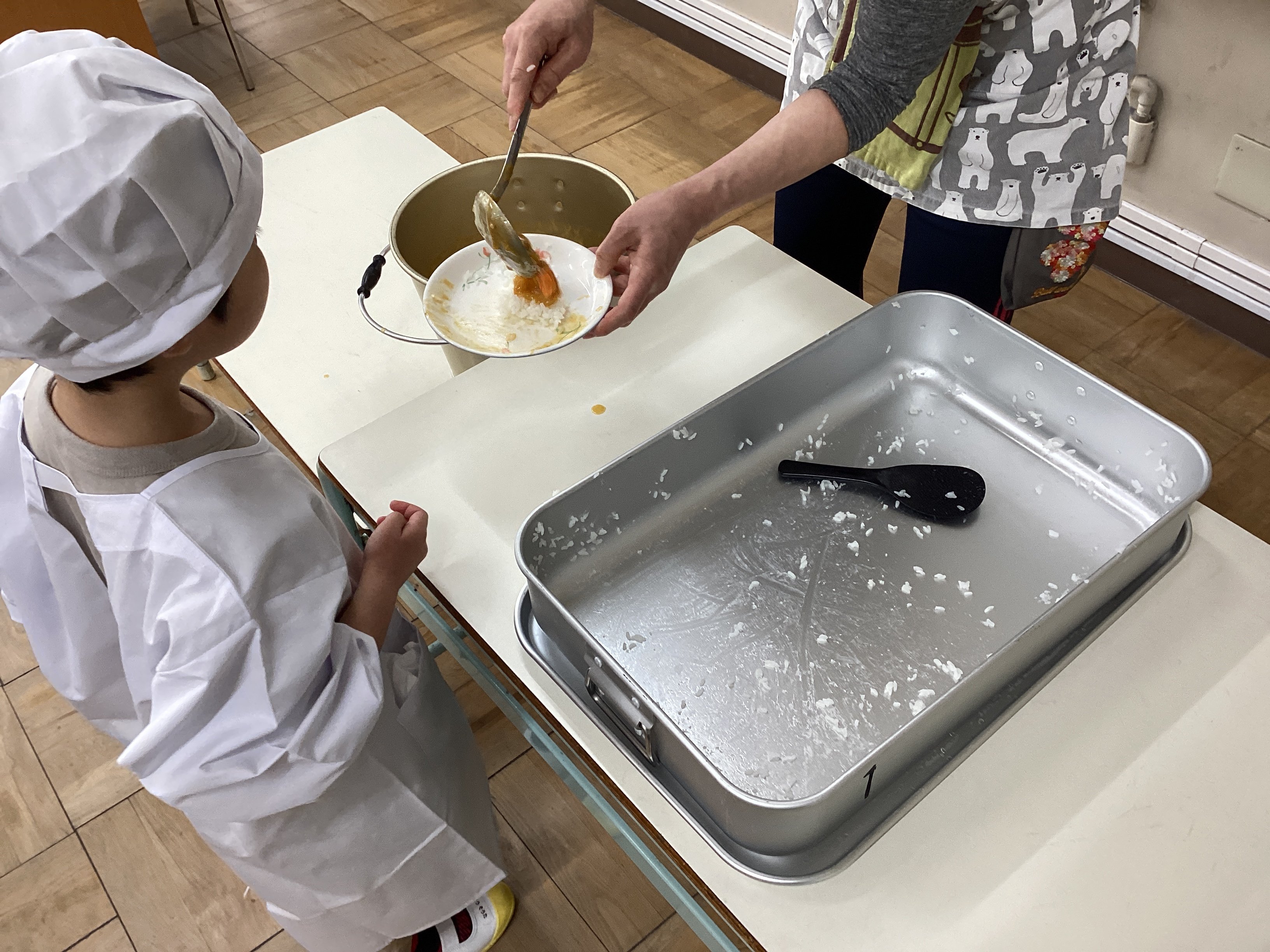 食べ始めると「おいしい!」といってモリモリ食べ、どちらのクラスも食缶が空っぽに。食欲も旺盛で元気モリモリでした!
