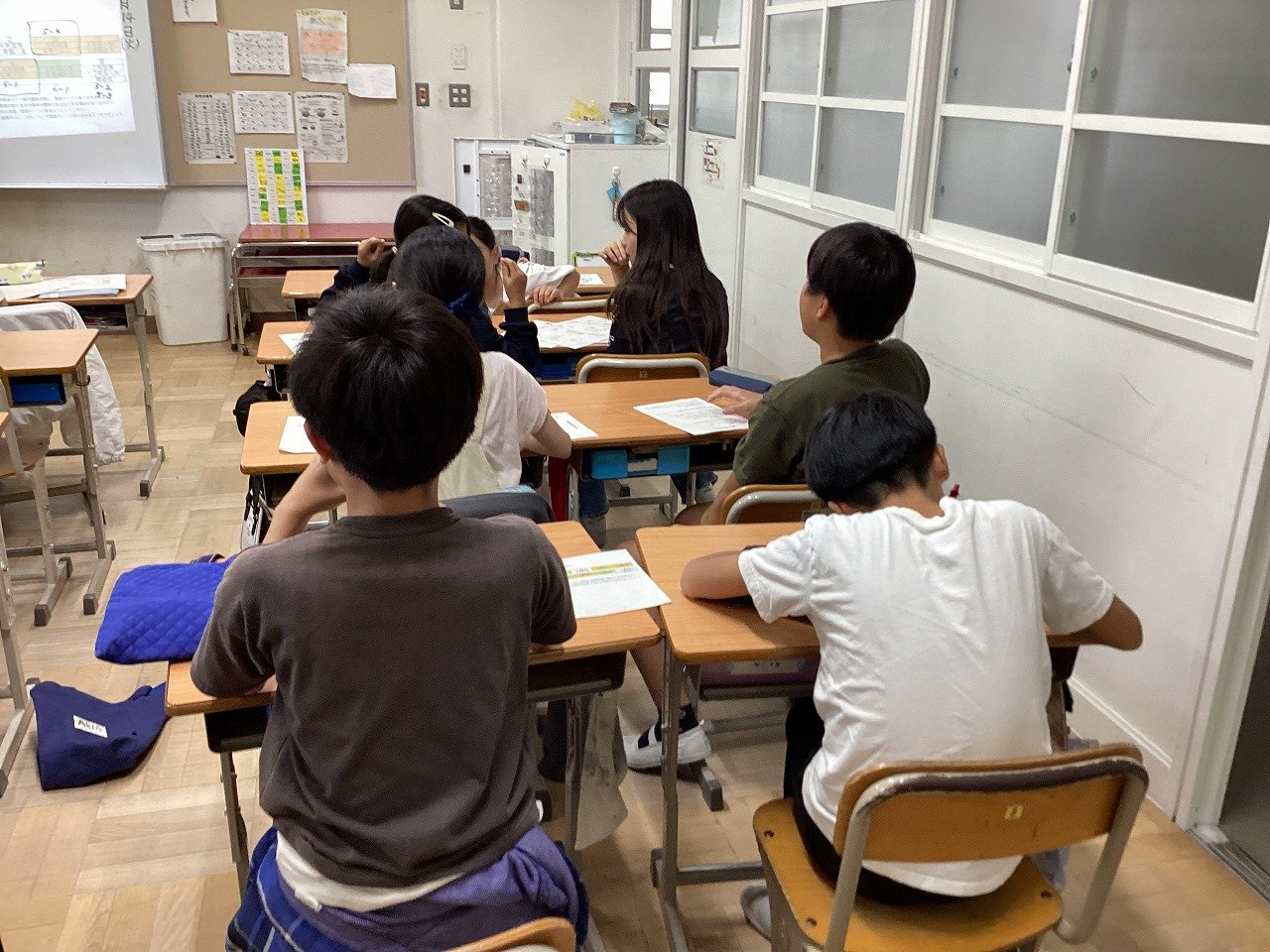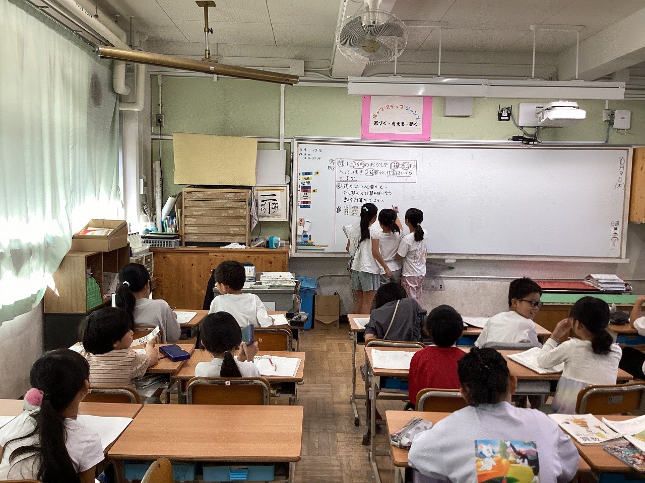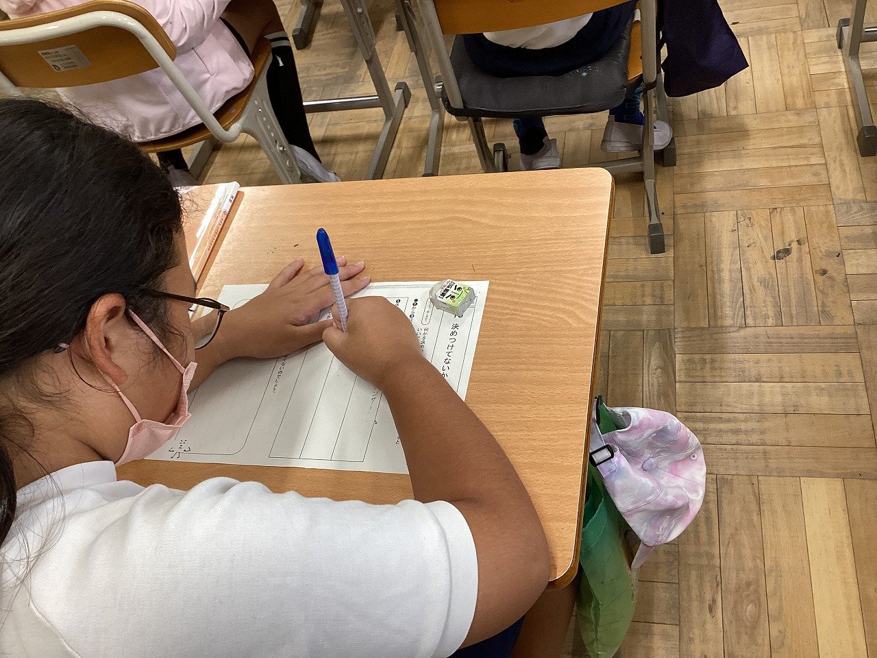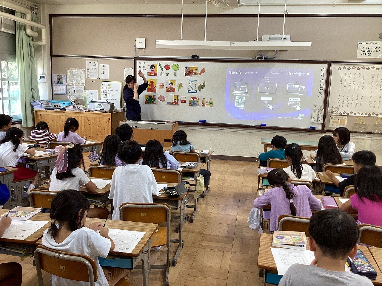 国語で学習した「サラダでげんき」から、りっちゃんの作ったサラダを食べたお母さんが元気になった理由と1学期に学習した栄養三色をつなげることで、より食に対する知識・関心を深めることをめあてに、給食の先生が授業をしてくれました。