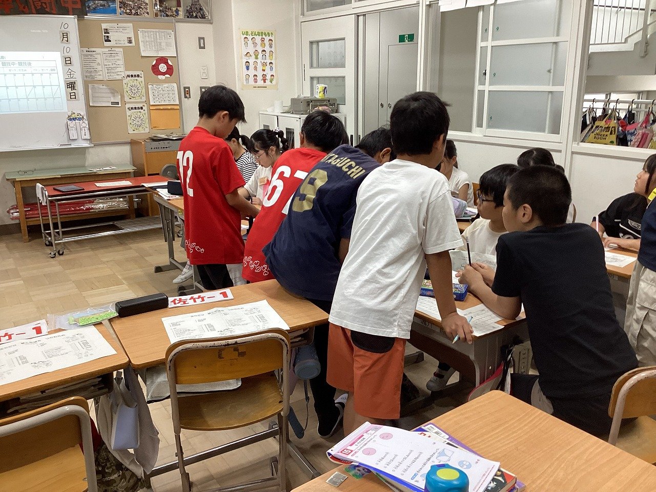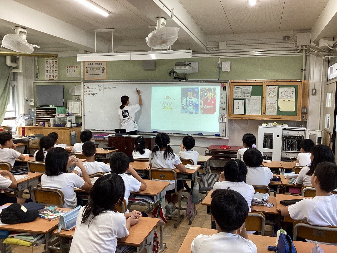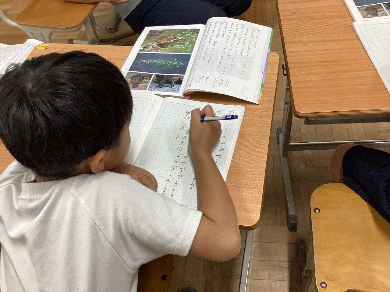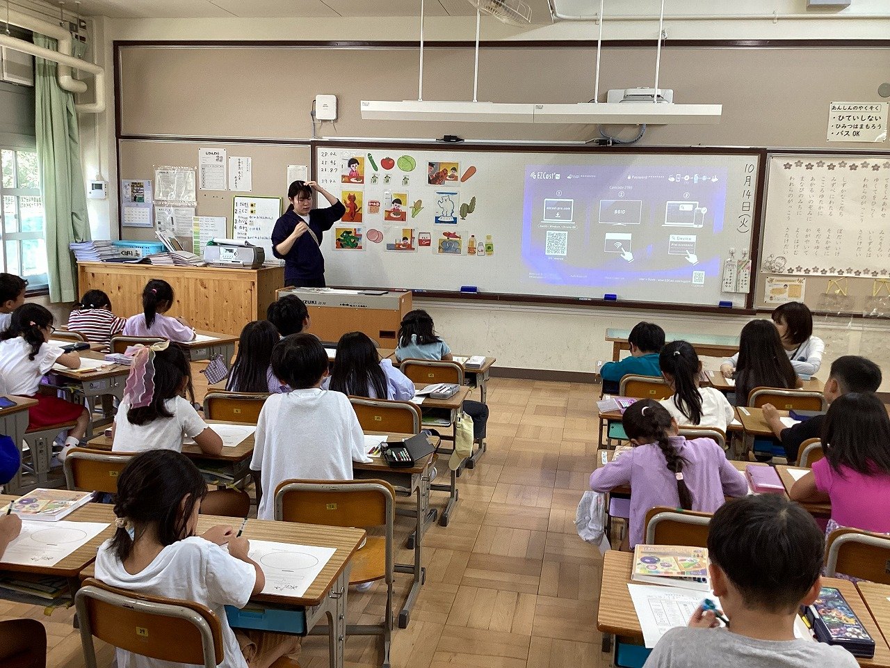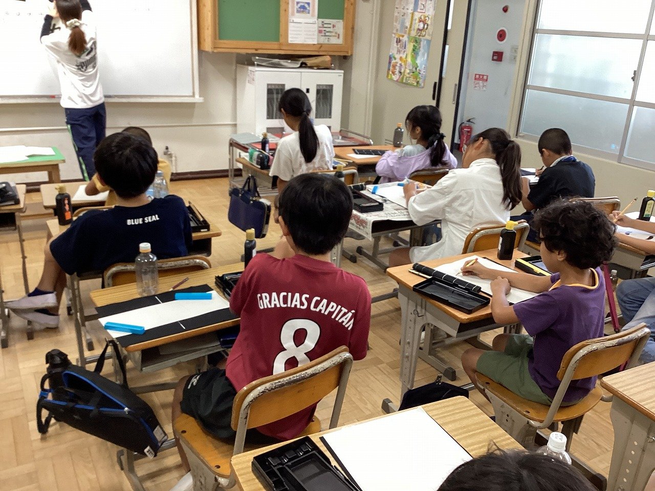国語で学習した「サラダでげんき」から、りっちゃんの作ったサラダを食べたお母さんが元気になった理由と1学期に学習した栄養三色をつなげることで、より食に対する知識・関心を深めることをめあてに、給食の先生が授業をしてくれました。