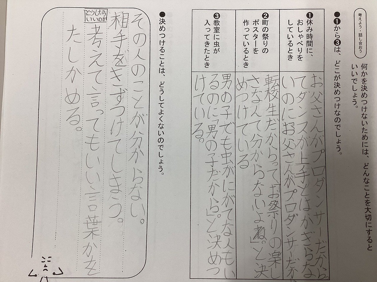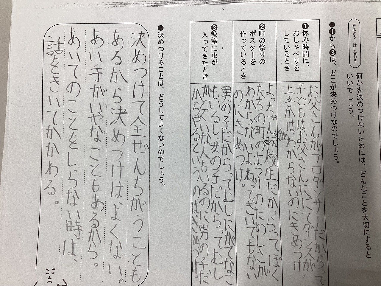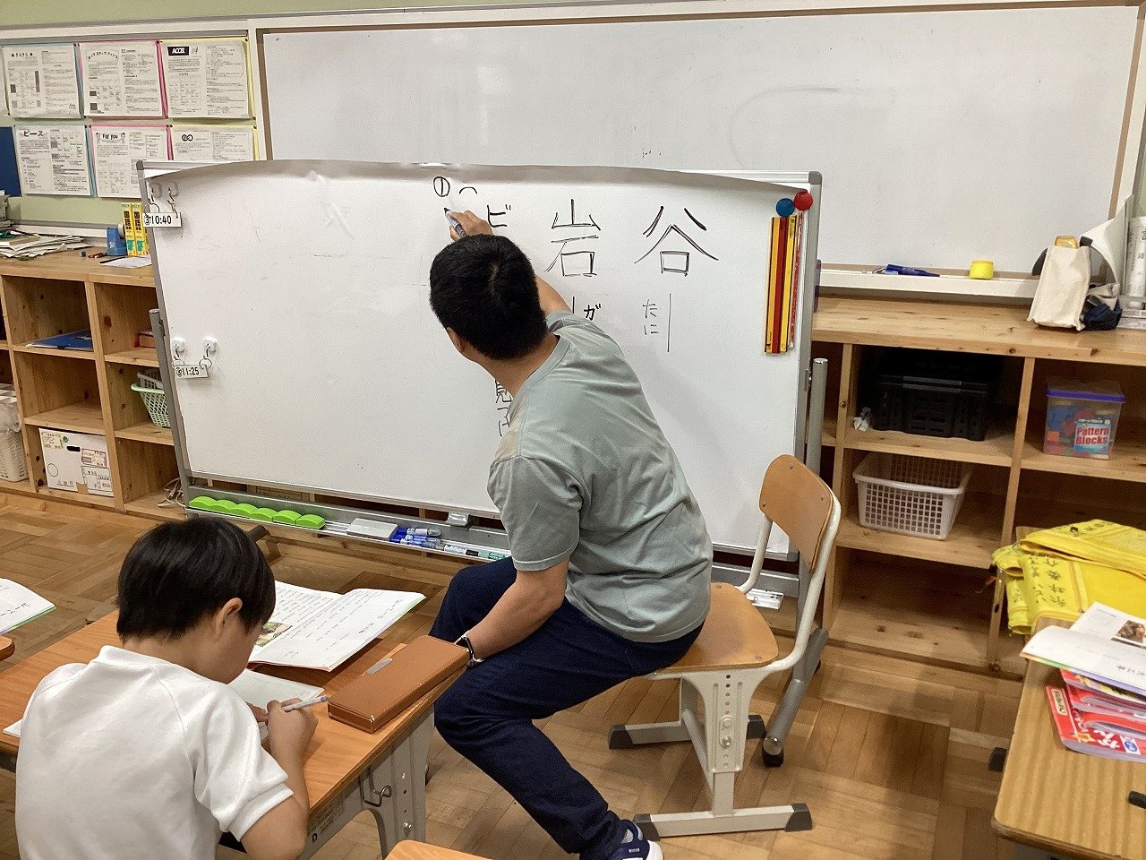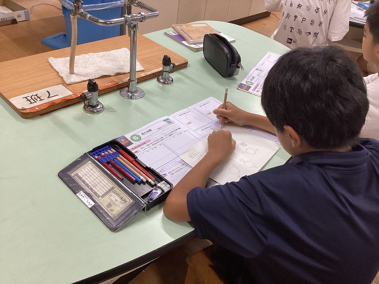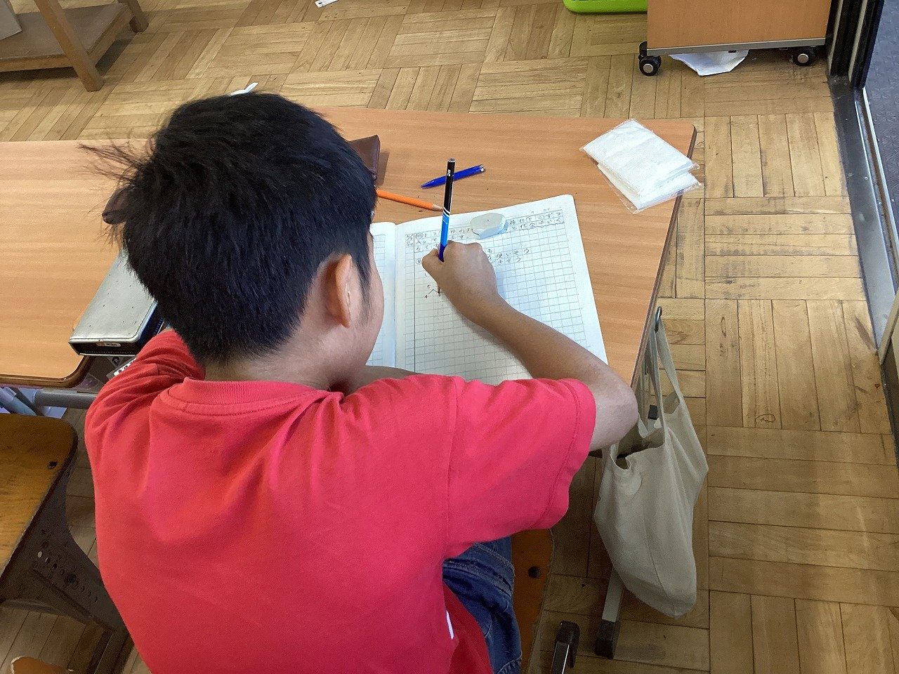 国語で学習した「サラダでげんき」から、りっちゃんの作ったサラダを食べたお母さんが元気になった理由と1学期に学習した栄養三色をつなげることで、より食に対する知識・関心を深めることをめあてに、給食の先生が授業をしてくれました。