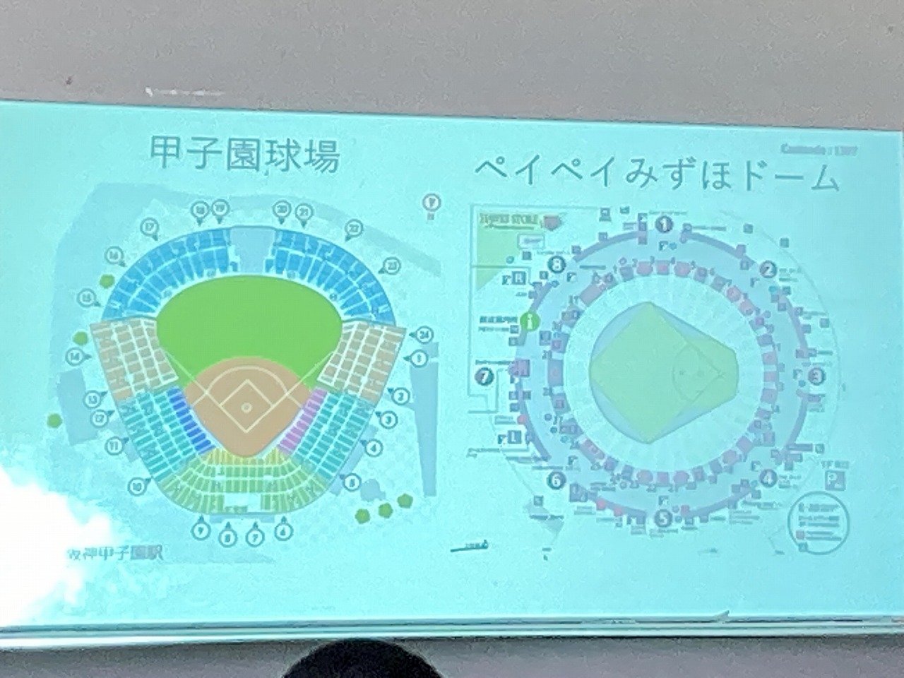 問題:甲子園球場とペイペイみずほドーム球場はどちらが広いかな?(観客席を除く)