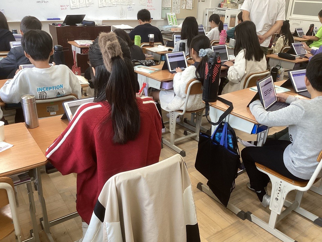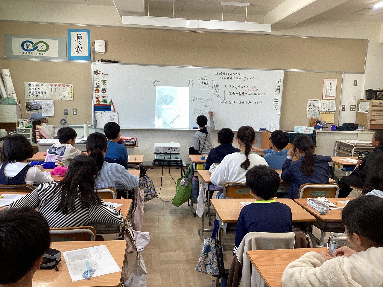 子どもたち同士が考えを深めていきます。先生は子どもたちの発言やつぶやきを紡いでいきながら授業をファシリテートしていた授業でした。