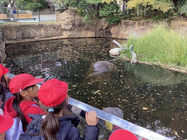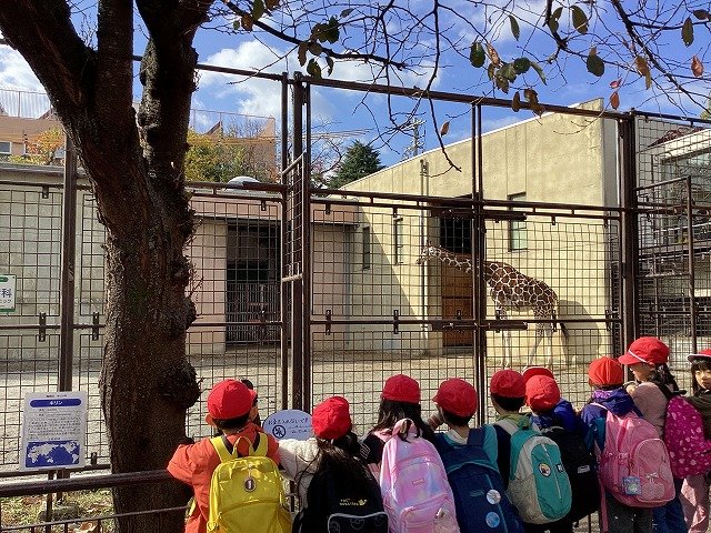 そして、動物園の中をクラスごとに見学をしました。「うわぁ、黄色いお猿さんがいるよ」「フクロウ、初めて見たよ」「キリンの首は本当に長いね」「アシカもいるよ」「ロボットのゴリラだ!」「フラミンゴ、きれい」・・・