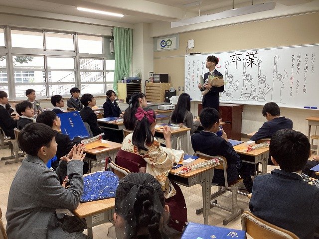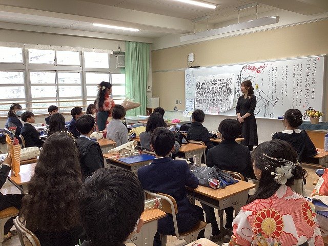 <4年生 >最後の読み聞かせ、何にしようか迷いに迷い、大好きな落語といつもの本をセレクト。夫婦で掛け合いを楽しみました。最後に我々から「ともだち」についてメッセージを送らせて頂きました。