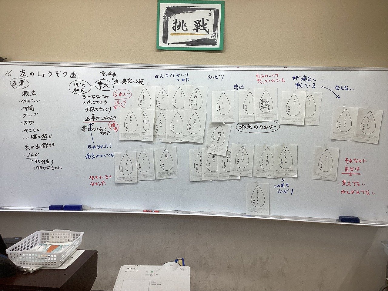 子どもたちが考えたなみだボードを先生と子どもたちで仲間分けをしながら、掲示していきます。
