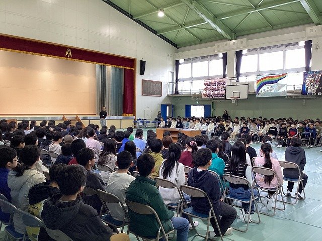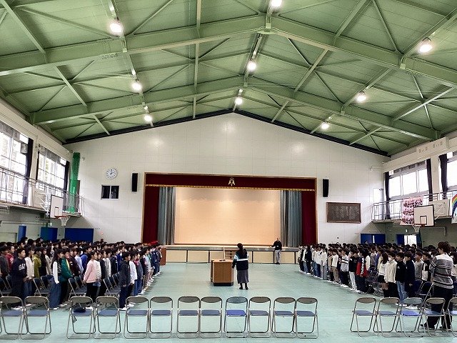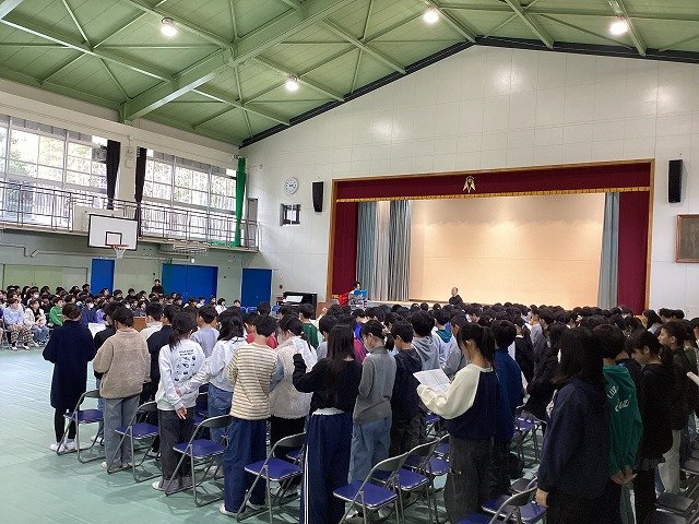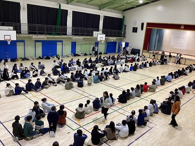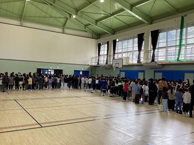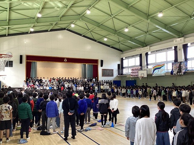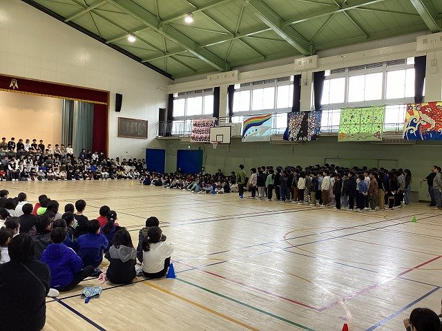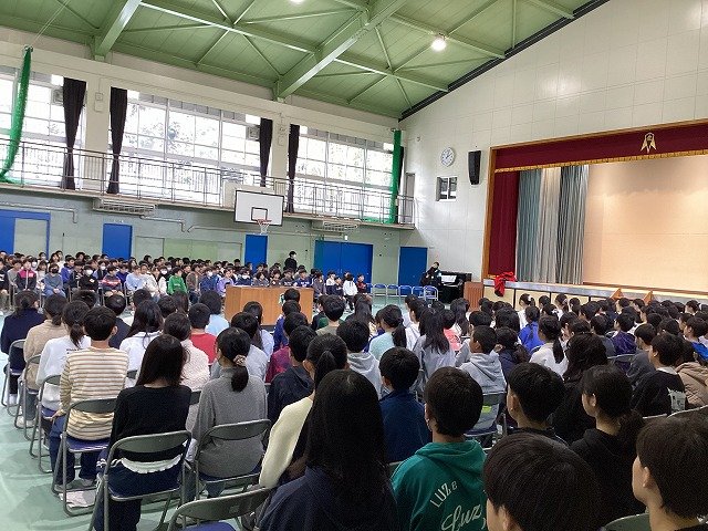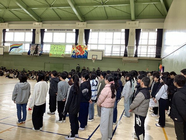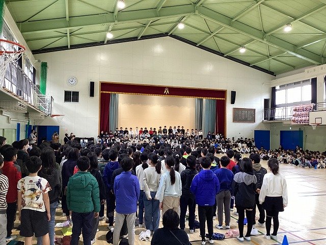 5年生と6年生が体育館に集まり、今日から卒業式の練習が始まりました。