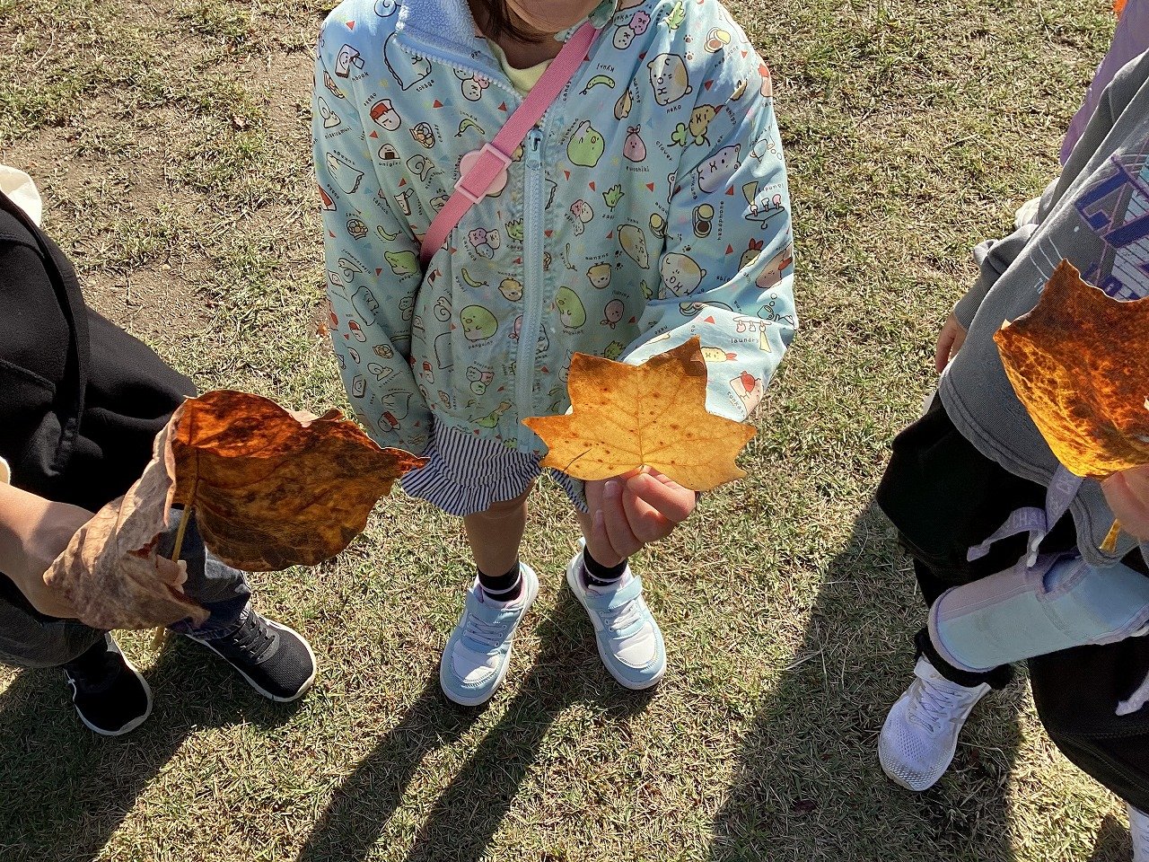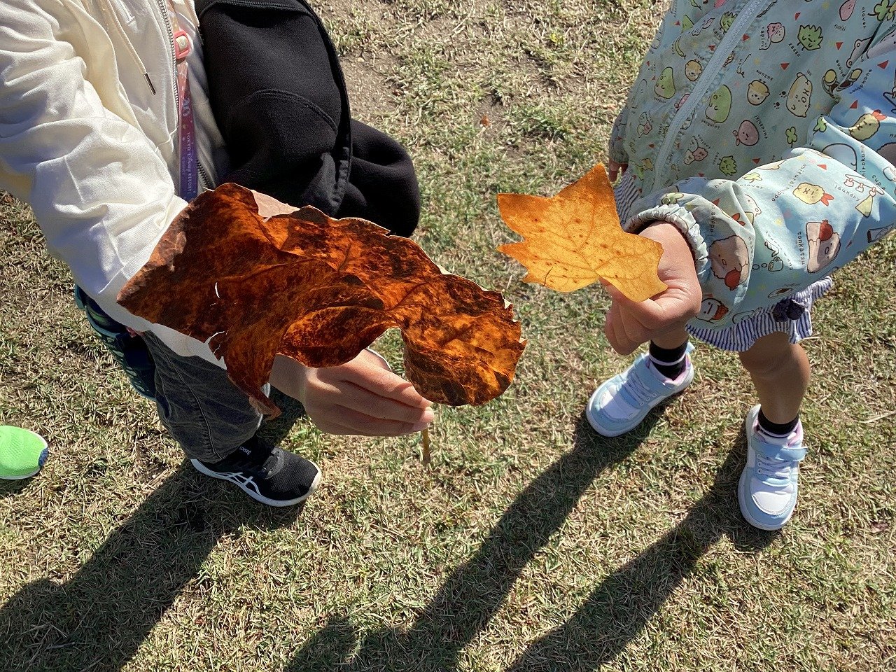 また、ねむのき公園や佐竹公園で落ち葉や松ぼっくりなどをみて、秋見つけもしてきました。