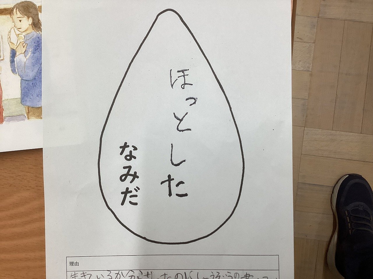 今日の授業では、ぼくが流したなみだについて深く考えていました。なみだボードの「〇〇〇〇なみだ」の中にタイトルとその理由を自分で考えて書いていました。