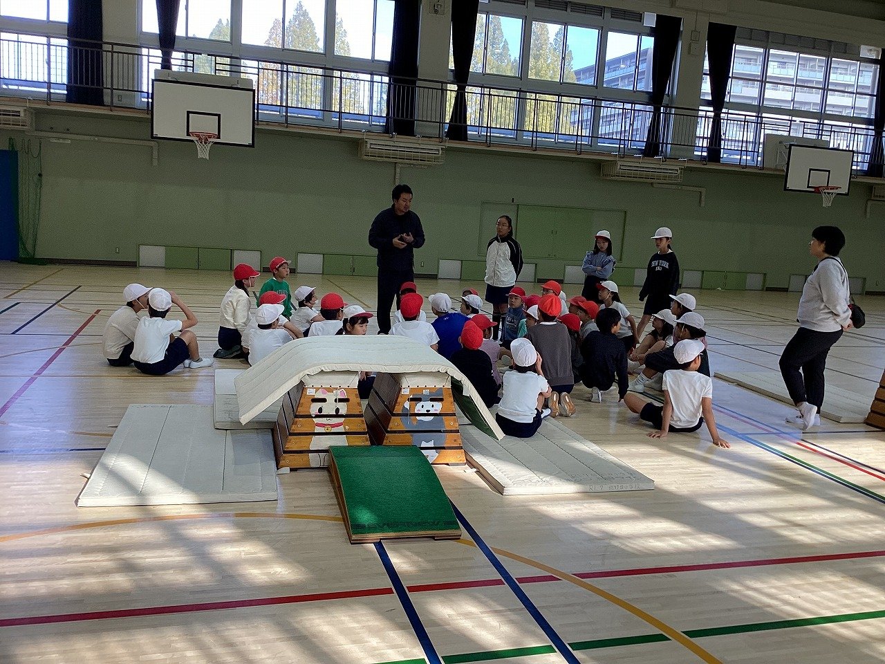 次時では、台上前転のコツやポイントを見つけ合う場面が見られそうです。