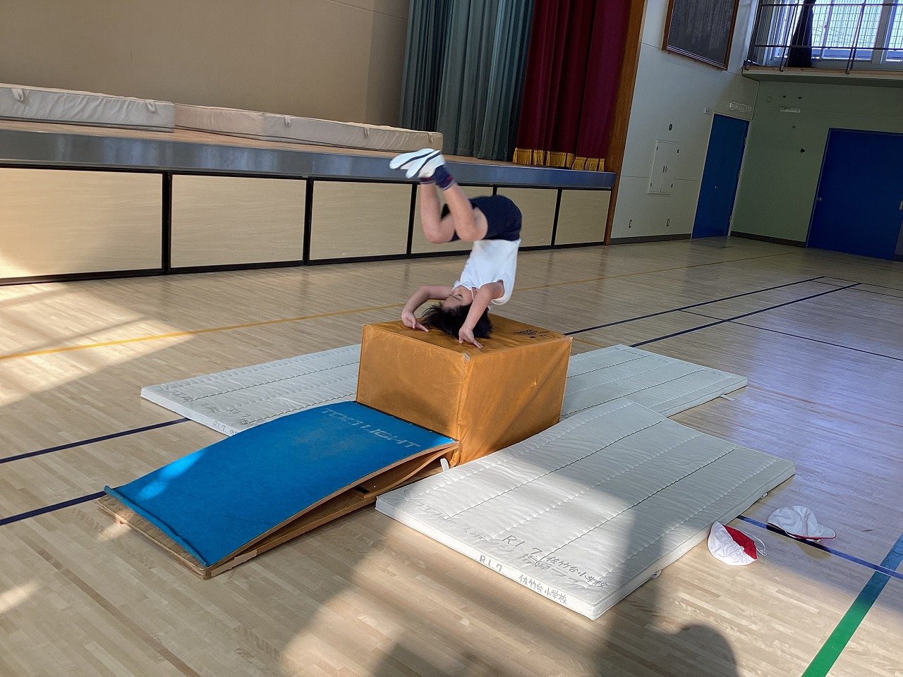 今日は、4年生になって初めての跳び箱技の「台上前転」に挑戦しました。
