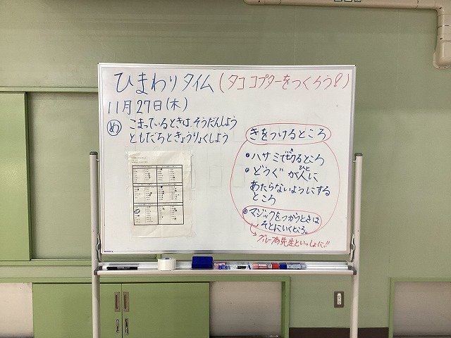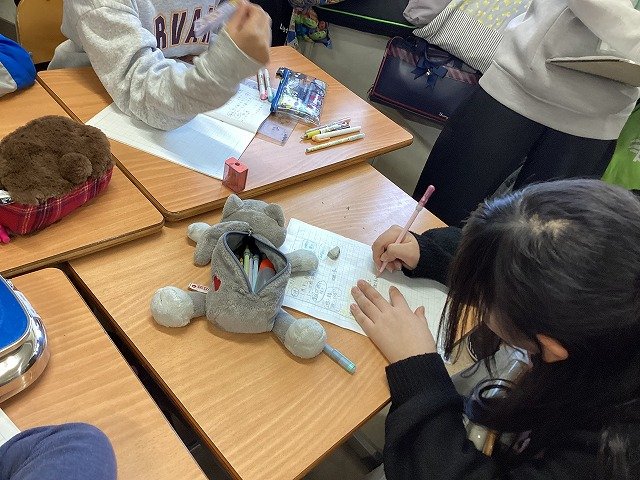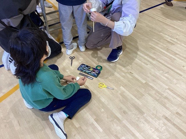 すると、高学年の子が、自分の分が完成していないにも関わらず、戸惑っていた人に教えてくれていました。残り時間が迫る中、あわてて自分の分を仕上げていました。やさしい気持ちが見えた場面でした。