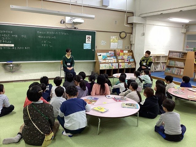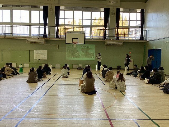 ひまわりタイムの後は、懇談会を行い、教職員が冬休みの宿題や過ごし方、今後の予定などを説明しました。