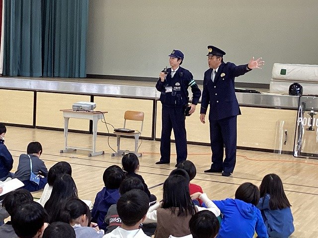 吹田警察署から2名の現役警察官の方に来ていただき、出前授業をしていただきました。