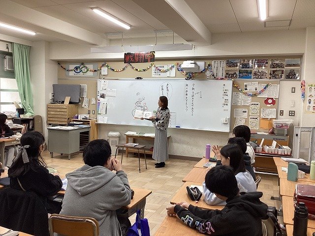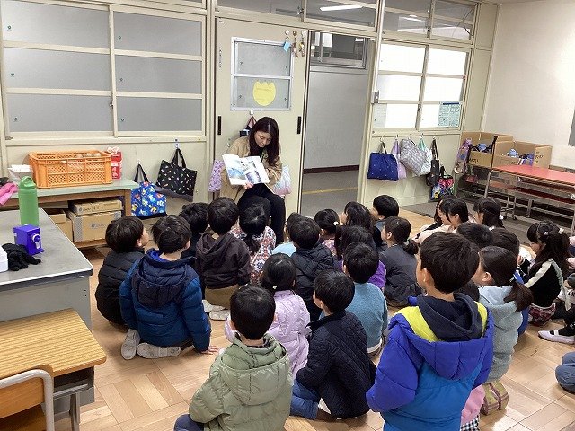 一年生は今、教科書でスイミーをやっていて、とても人気だと聞いたのでスイミーが食べられそうになるマグロの事を読んだら面白いかなと思い選びました。みんな、イワシの群れのところでこれスイミーたちや!と言って盛り上がってくれました。 思ったよりいっぱい質問してくれたり、驚いてくれたり、知らなかった!そうなんや!と言ってくれて反応とっても良かったです!スイミーが大好きだからかとても興味を持ってくれました。
