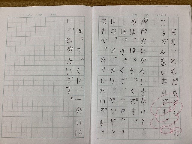 【あしたするよ】 がまくんとかえるくんのふたりはなかよしのシリーズの中から1話選んで読みました。2年生の国語で今お手紙を学んでいるのでがまくんとかえるくんのやりとりに興味を持ってくれていたように感じます。