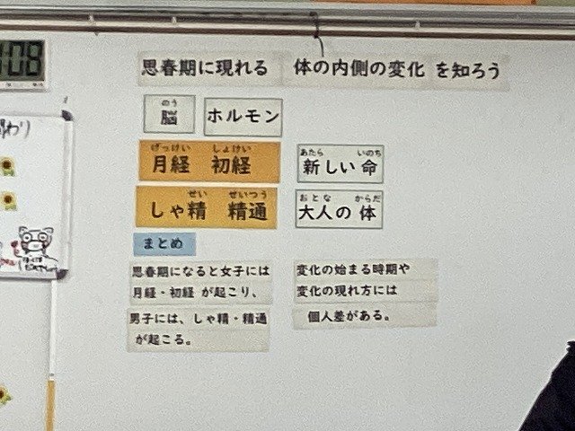 一般的に、思春期の体の変化は男子より女子の方が早く起きることが多いことを確認して授業は終わりました。