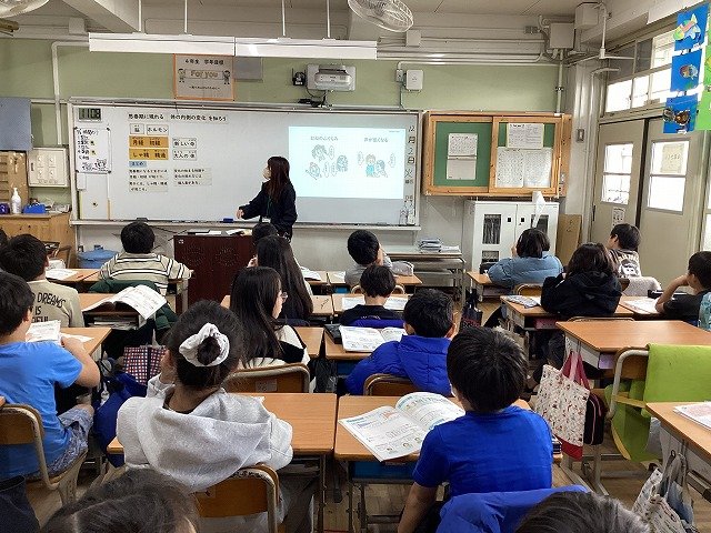 今日は、保健の先生が4年生に「みんなの体は、どんなふうに変わっていくのだろうか」について絵本を用いて授業をしてくれました。