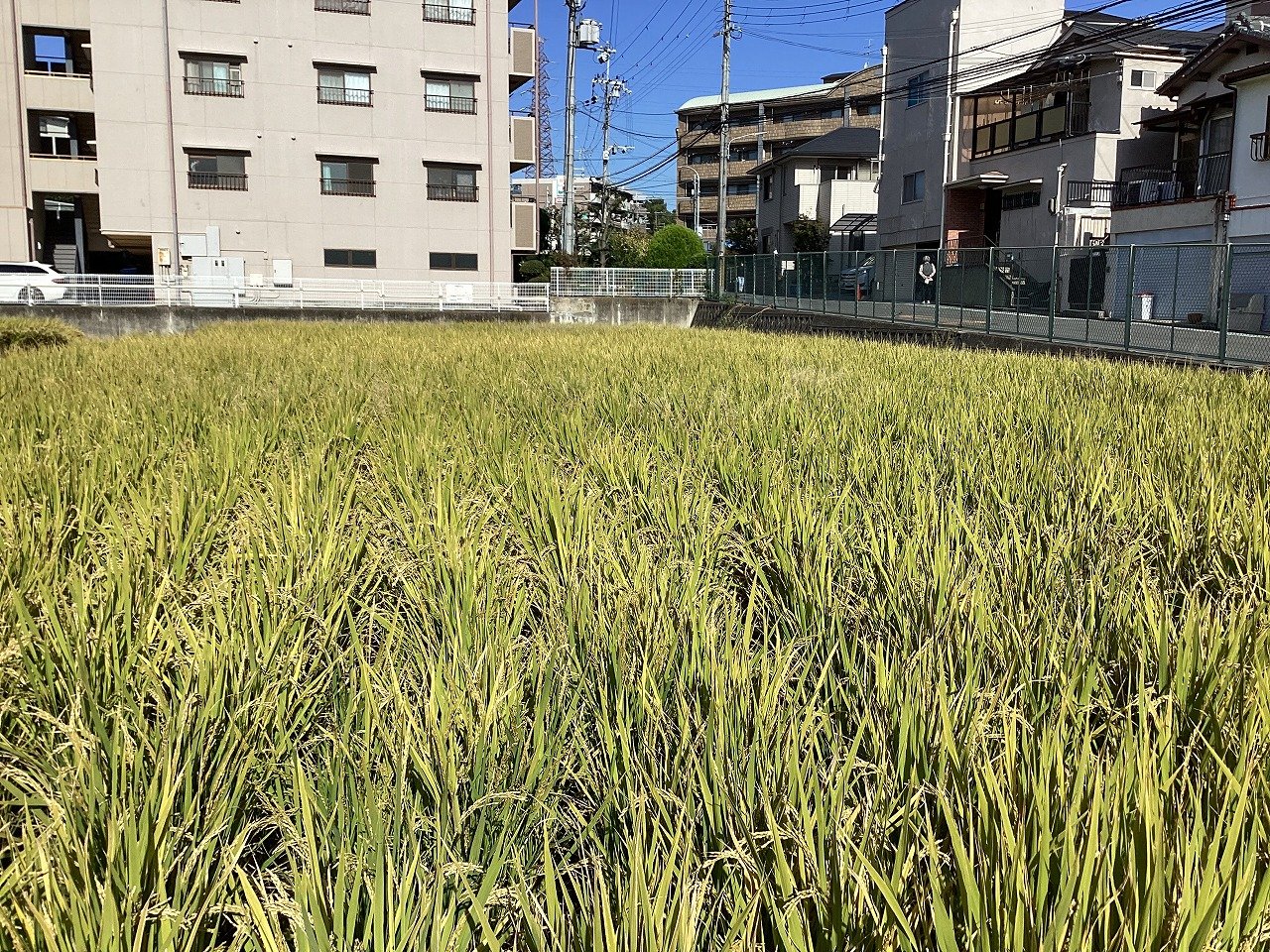 6月16日に植えた苗がすくすく育ち、秋晴れの下、本日稲刈りをすることができました。