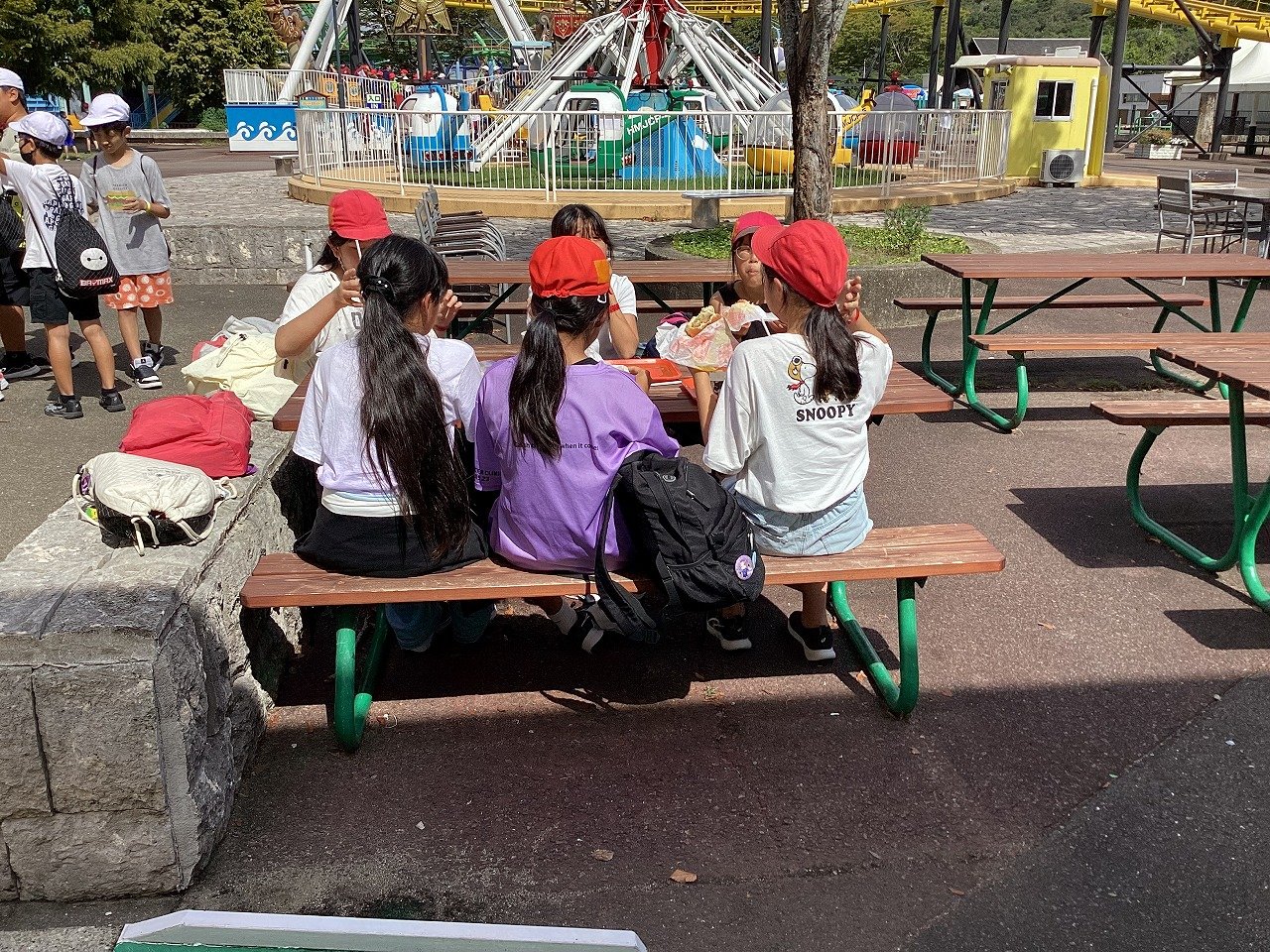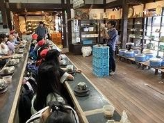 そして、お家の方、先生たちが見送る中、4台のバスが出発しました。 渋滞もなく、予定通り琵琶湖博物館に到着し、館内の展示をグループでしっかり見学していました。その後水茎焼・陶芸の里で昼食を済ませ、コップ、お皿などの自分だけの焼き物の作品を作りました。完成した焼き物が届くのは2カ月後になりますが、到着が待ち遠しいですね。