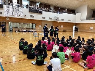 今日は、朝の時間に佐竹台小学校の各クラスを回り、折り鶴に込められた願いを説明してくれました。