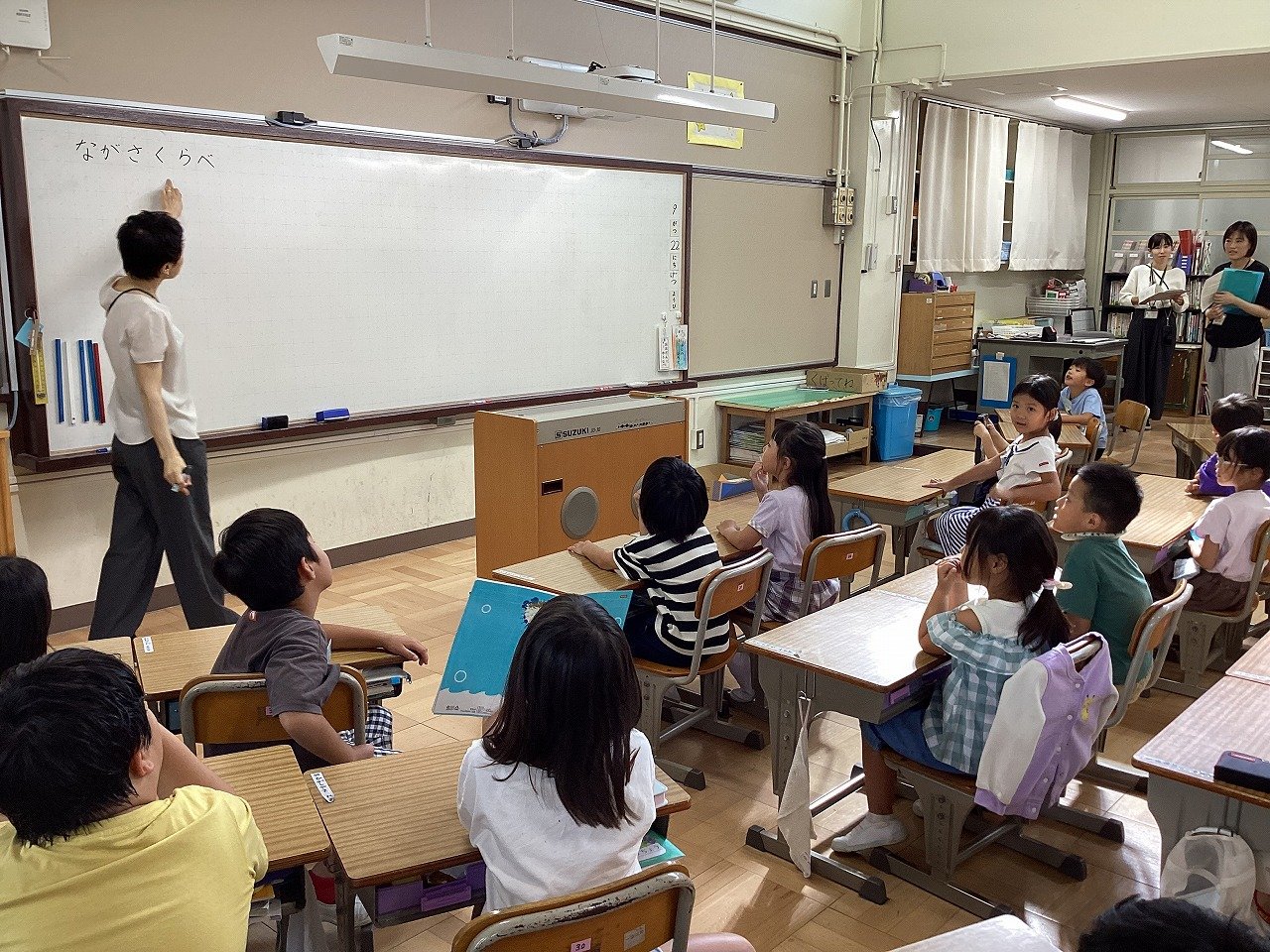 今日は、4年生のすいたえいごキッズがありました。はじめにspecial teacherが子どもたちに質問です。