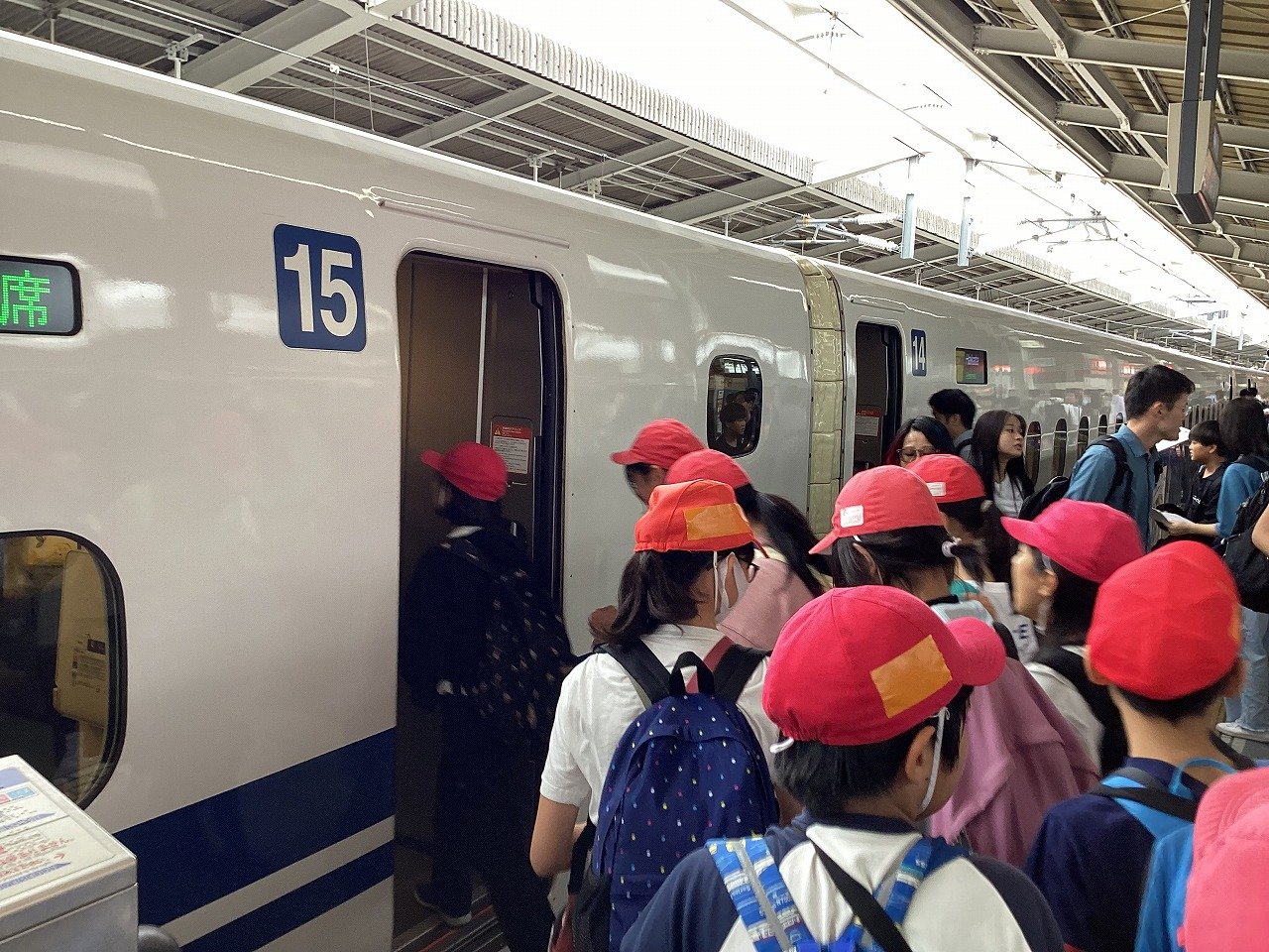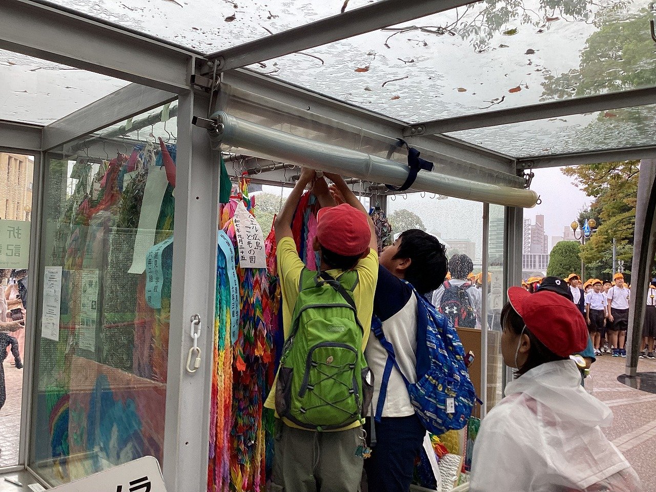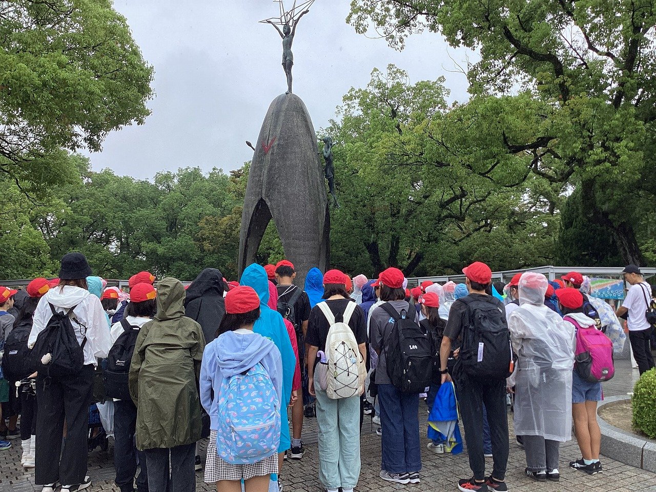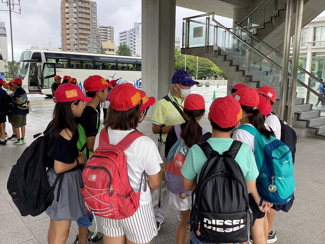 出発式では「実際に広島に行って、碑めぐりのガイドさんの広島や戦争、平和についての話を聞いたり、平和記念資料館を自分の目で確認したりするなどして、戦争当時暮らしていた人たちを想像し、何かを肌で感じてほしい」ということを子どもたちに伝えました。