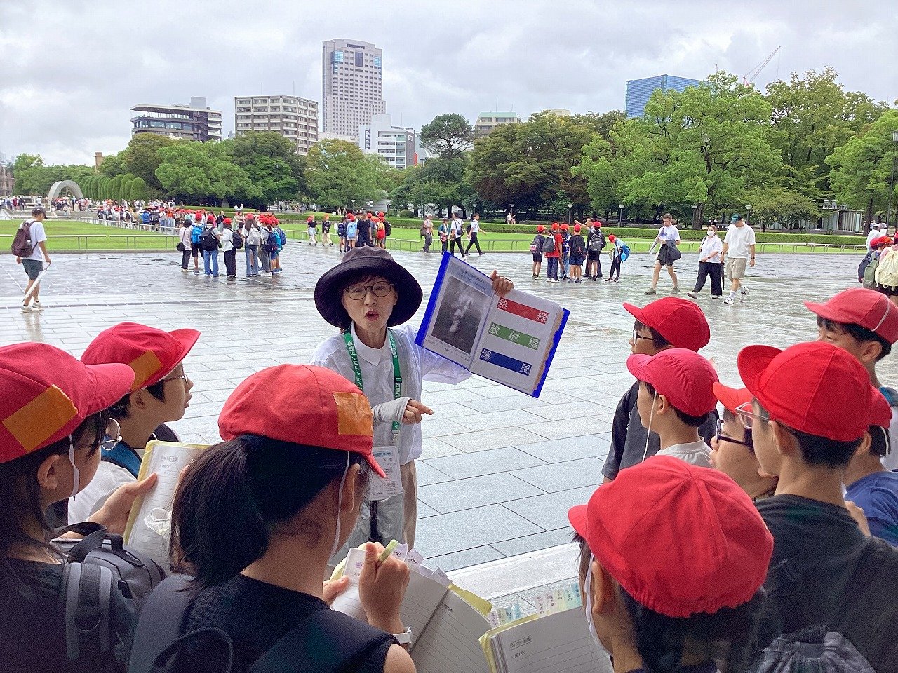 そして、実際に碑めぐりのガイドさんの話を聞いている様子を見ていると、真剣な眼差しでメモをとったり、座って話すガイドさんの近くに行き、聞き逃さないよう膝をついて聴いたりしている子どもの姿がありました。